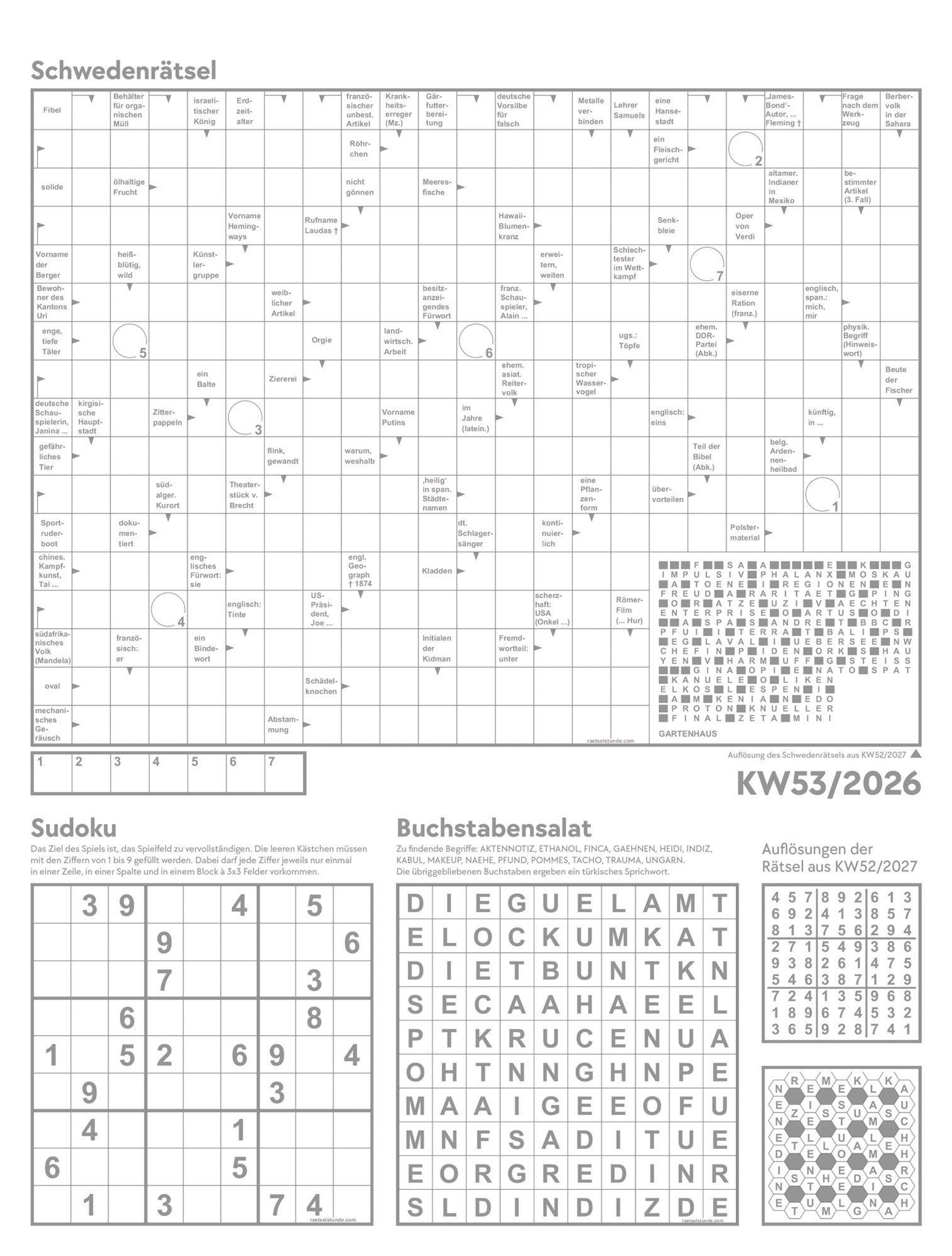 Mit übersichtlichem Eintragekalendarium sowie Kreuzworträtseln und Sudokus auf jeder Rückseite