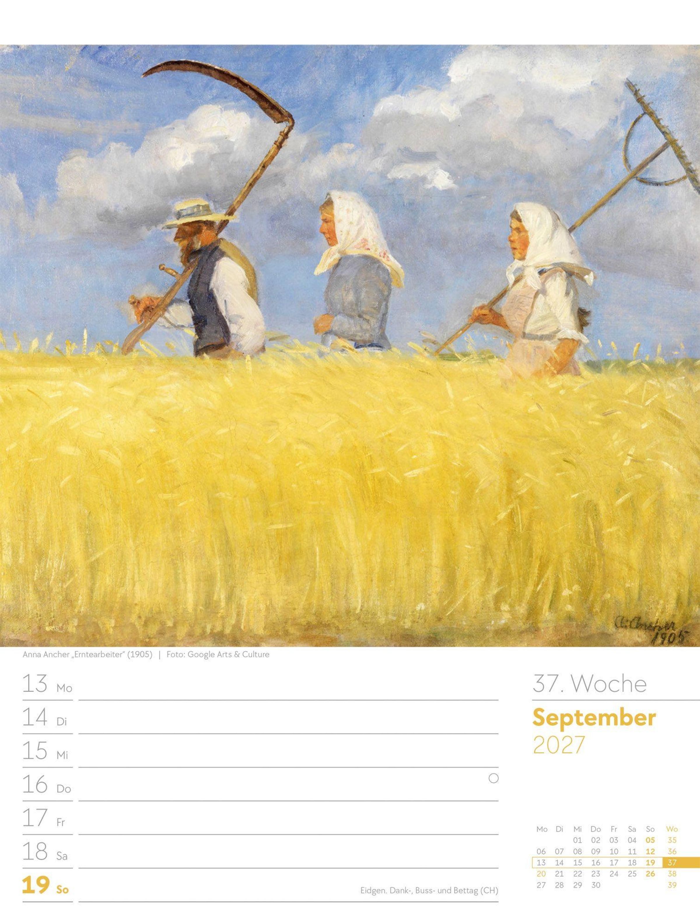 Wochenkalender mit 53 Gemälden namhafter Künstler aus dem 19. und 20. Jahrhundert
