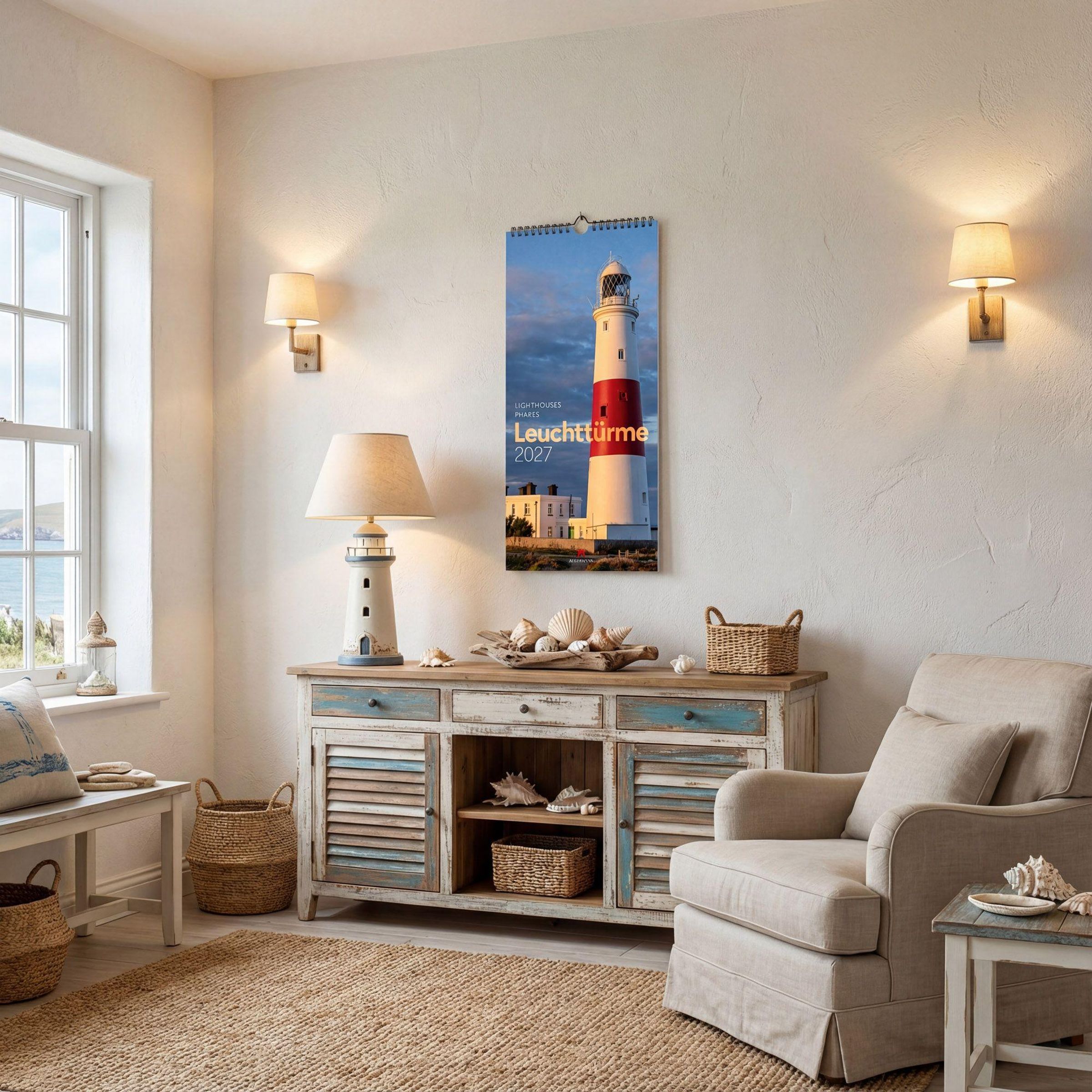 - Maritimer Architektur-Kalender im schlanken Hochformat (33x66 cm) | Leuchtfeuer an Meer und Küste