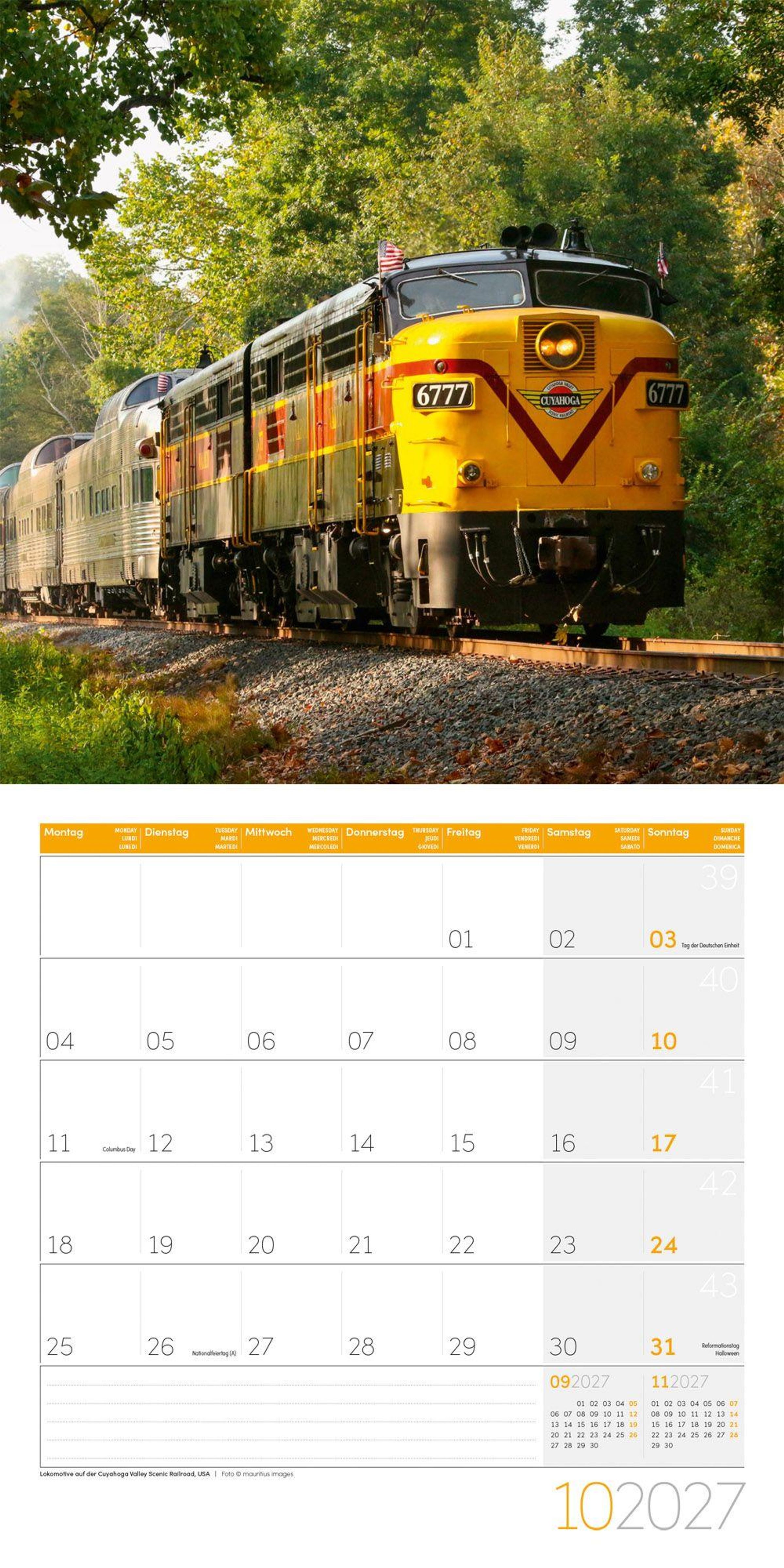 Eisenbahn-Kalender im schlanken Hochformat: 30x30 cm, (aufgeklappt 30x60 cm)