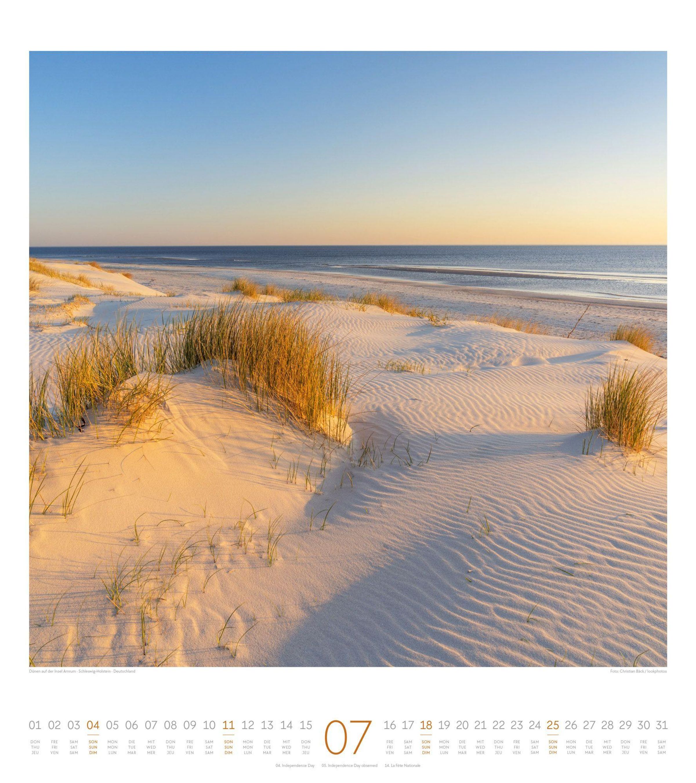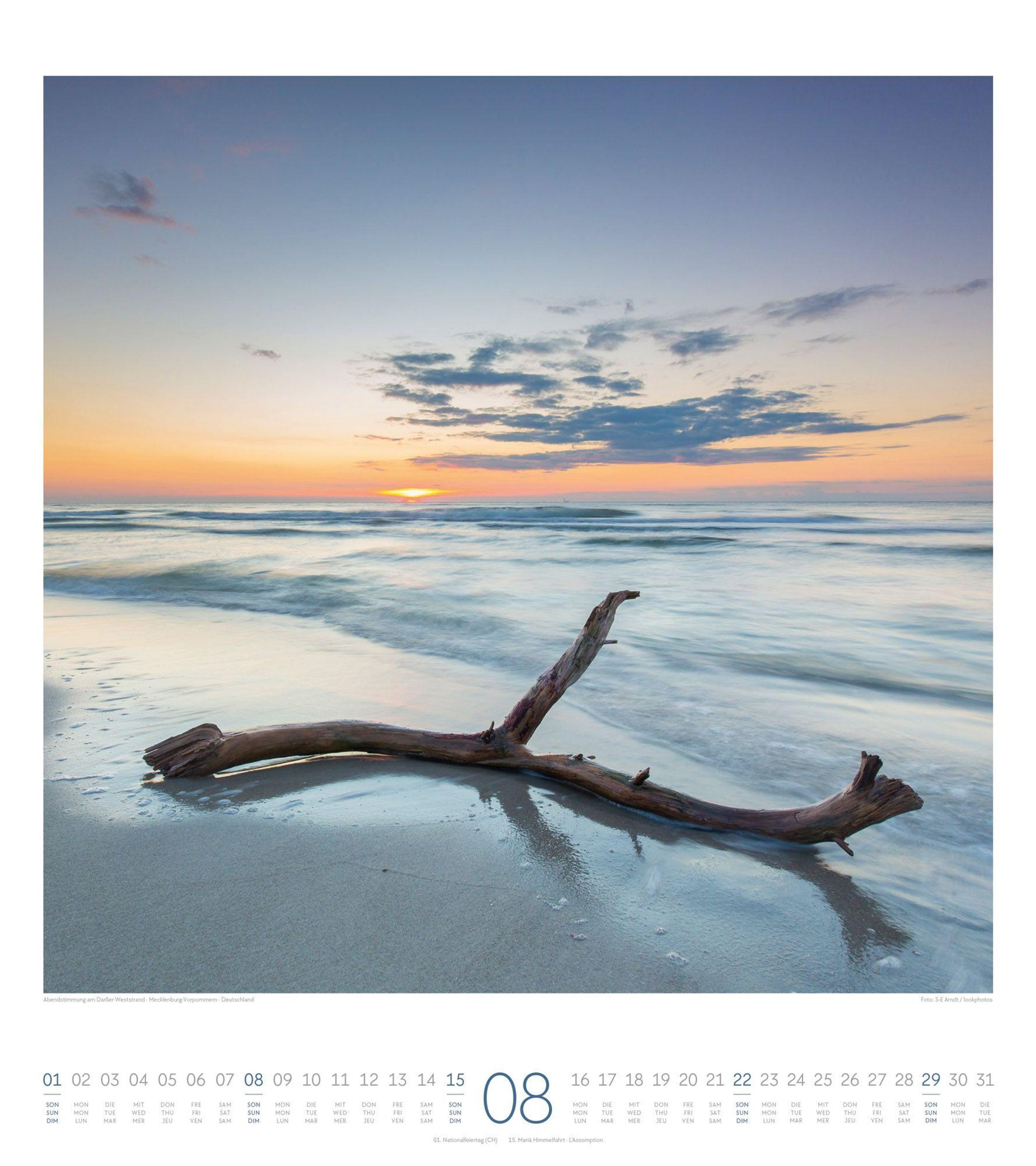 Tauchen Sie ein in die beruhigende Schönheit der Küstenlandschaften mit unserem Kalender "Meeresstille". Genießen Sie den zarten Minimalismus der Motive und die malerische Vielfalt der maritimen Natur aus Sicht deutscher Inseln und Küsten. Halten Sie inne und lassen Sie sich von der friedlichen Atmosphäre des Wassers inspirieren. Entdecken Sie Nordsee und Ostsee in ungewohnt reduzierten Kompositionen und spüren Sie diese ganz besondere Ruhe, die sich während eines ungestörten Tages am Meer einstellt.