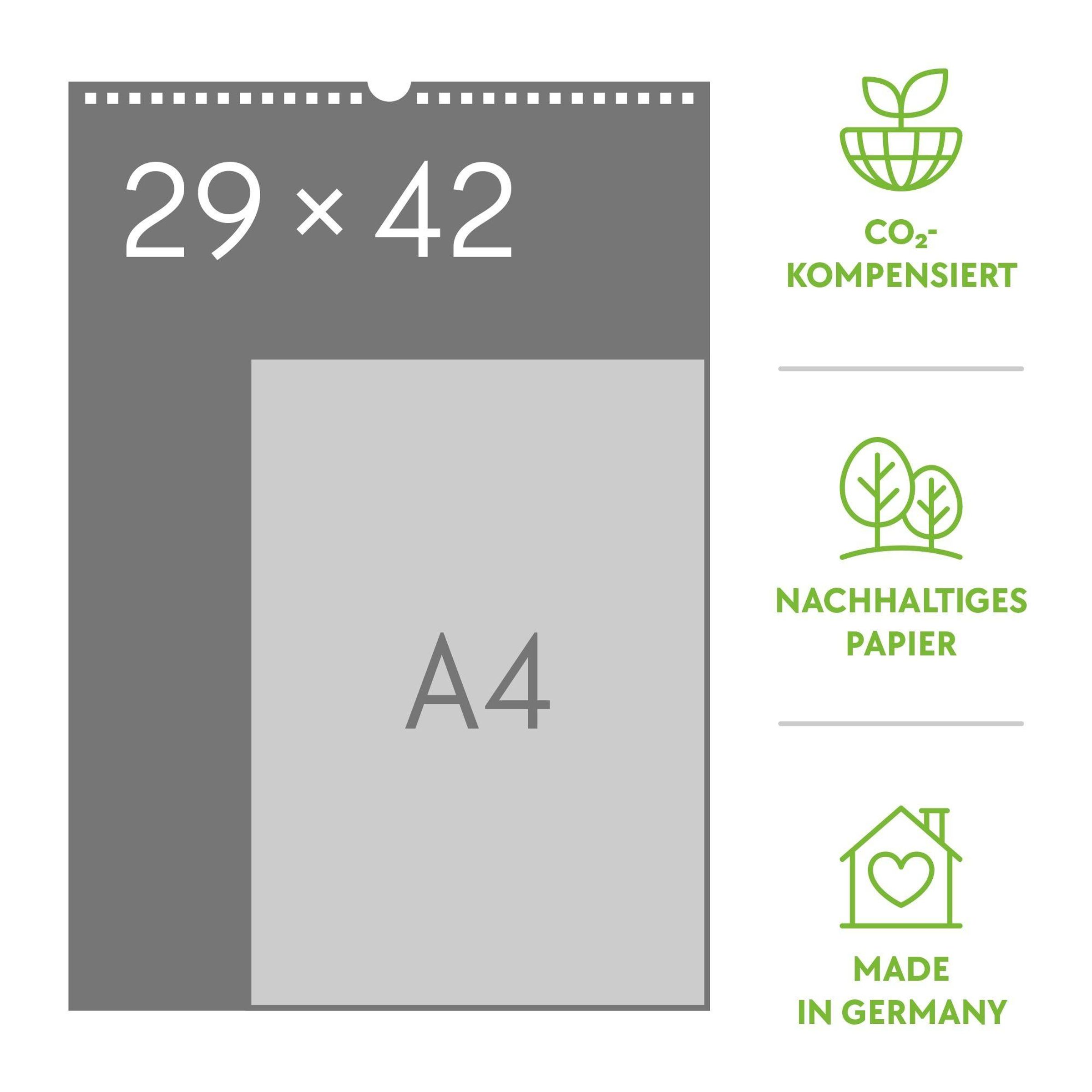 Hochwertiger Wandkalender mit 150 g / qm Papier und Spiralbindung