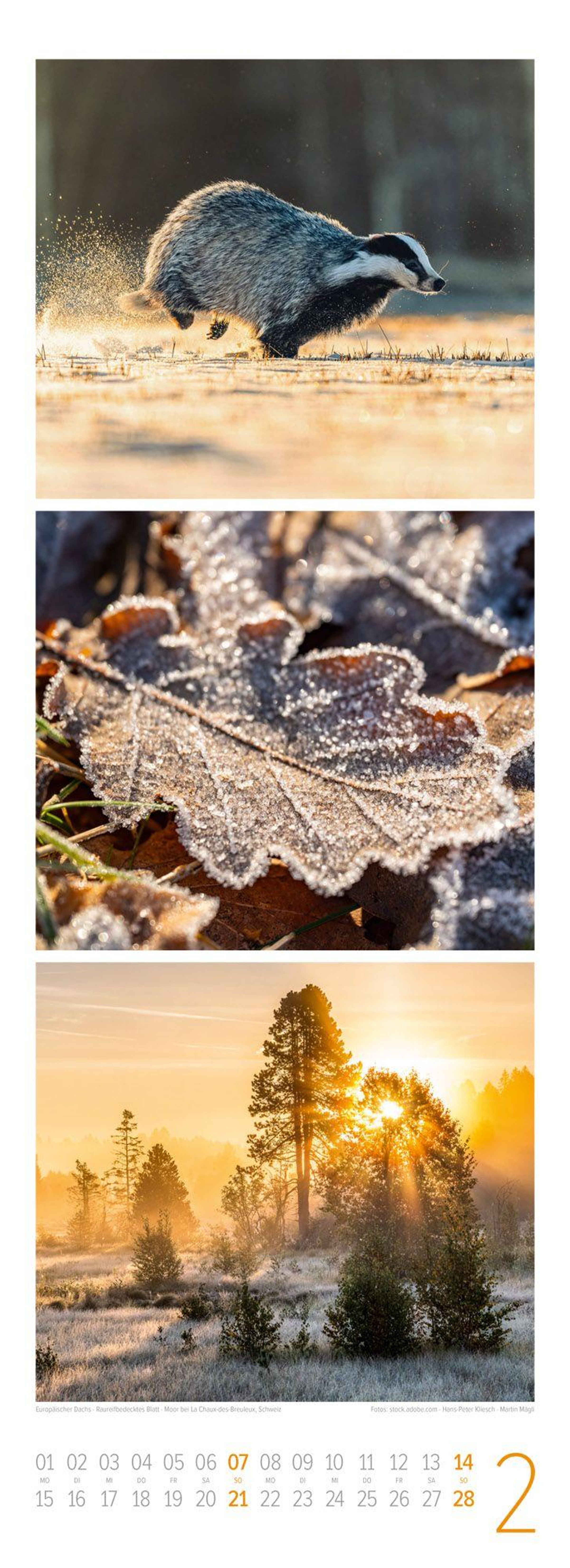 Die Natur malt in den prächtigsten Farben und mit den schönsten Details - die in diesem Fall auch noch einen harmonischen Dreiklang ergeben. In farblich aufeinander abgestimmten Motiven erzählt dieser Triplet-Kalender Geschichten vom Sehnsuchtsort Wald im Wandel der Jahreszeiten. Lassen Sie den Alltag hinter sich, konzentrieren Sie sich ganz auf die kleinen und großen Wunder und genießen Sie die tiefe Ruhe beim Betrachten von Flora und Fauna.