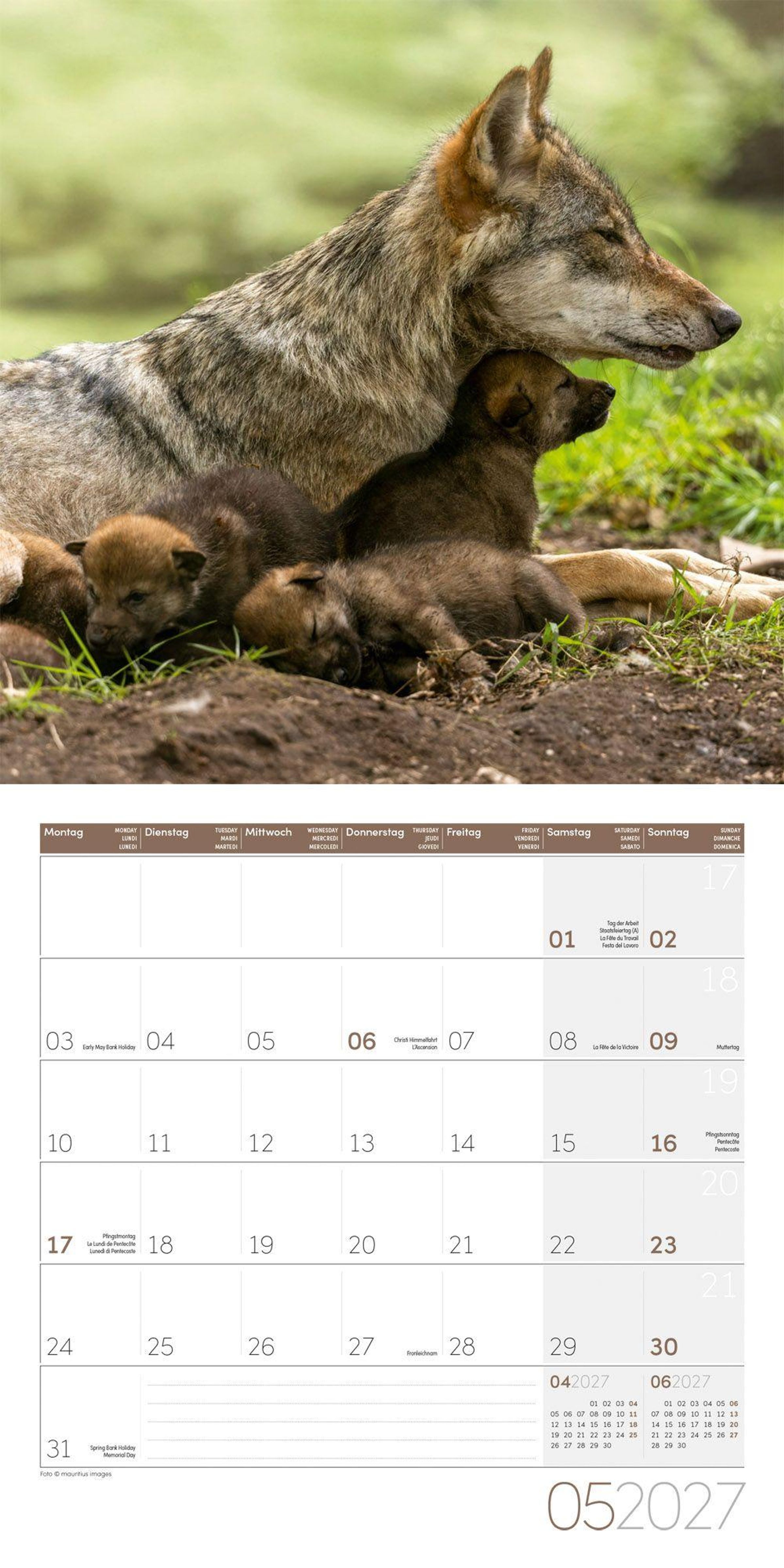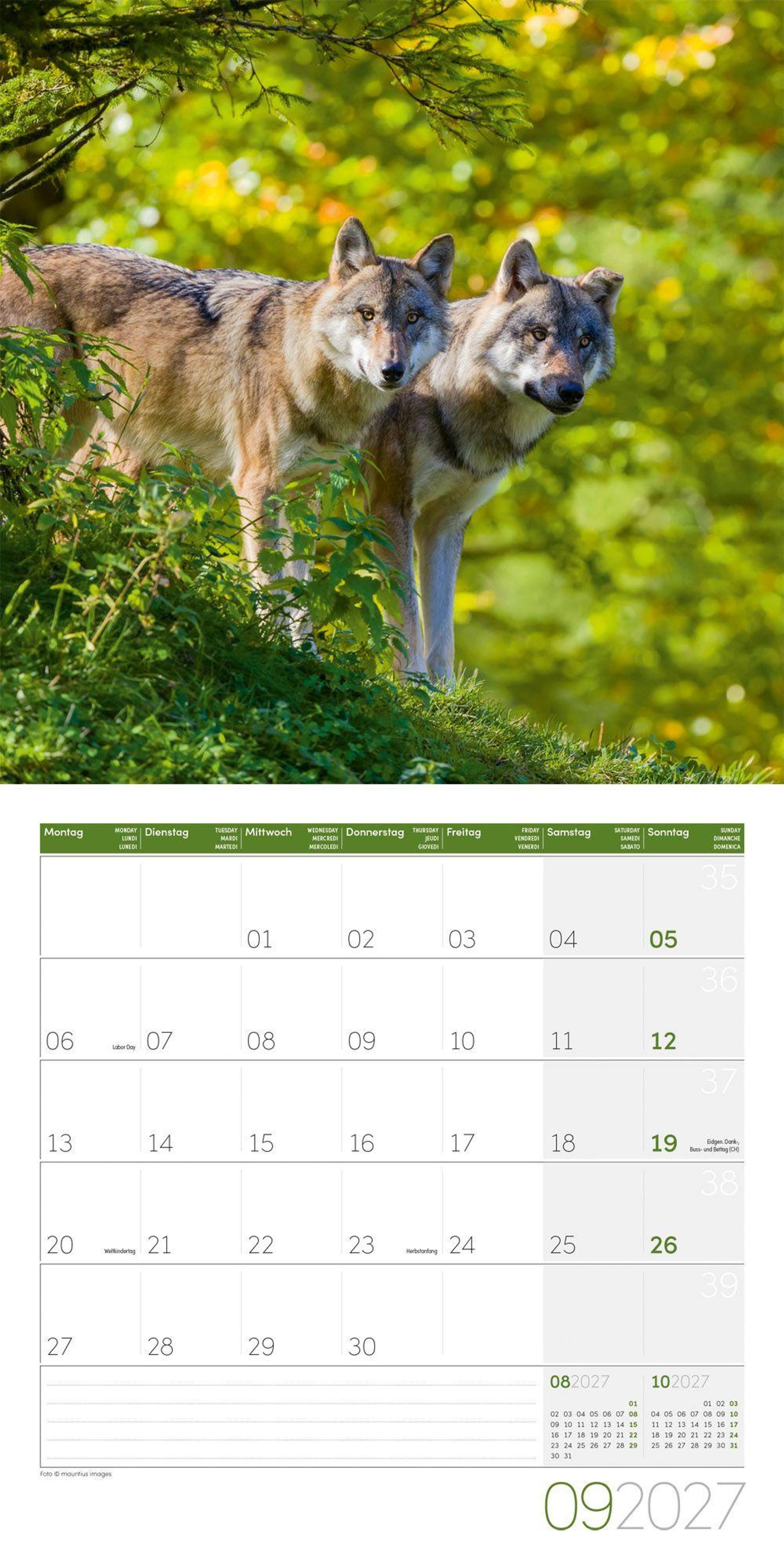 Wölfe-Kalender im schlanken Hochformat: 30x30 cm, (aufgeklappt 30x60 cm)