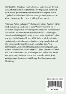 Der Erzähler findet das Tagebuch seines Urgroßvaters, der sich als Arzt im böhmischen Hinterland niedergelassen hatte und nach einem gescheiterten Selbstmordversuch begann, dieses Tagebuch zu schreiben. Stifter arbeitete gut zwei Jahrzehnte an dieser Erzählung, die er sein >>Lieblingskind<< nannte.