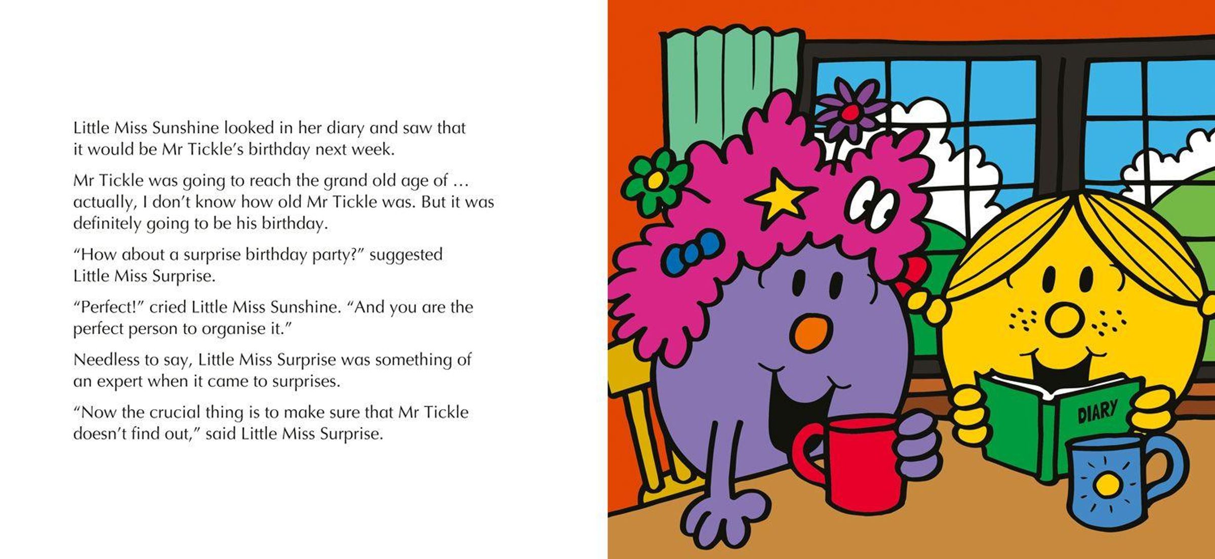 It's going to Mr Tickle's birthday, so can you guess what Little Miss Surprise suggests? A surprise party, of course! But will her friends be able to keep it a surprise? And what other surprises are in store for Mr Tickle on his birthday?