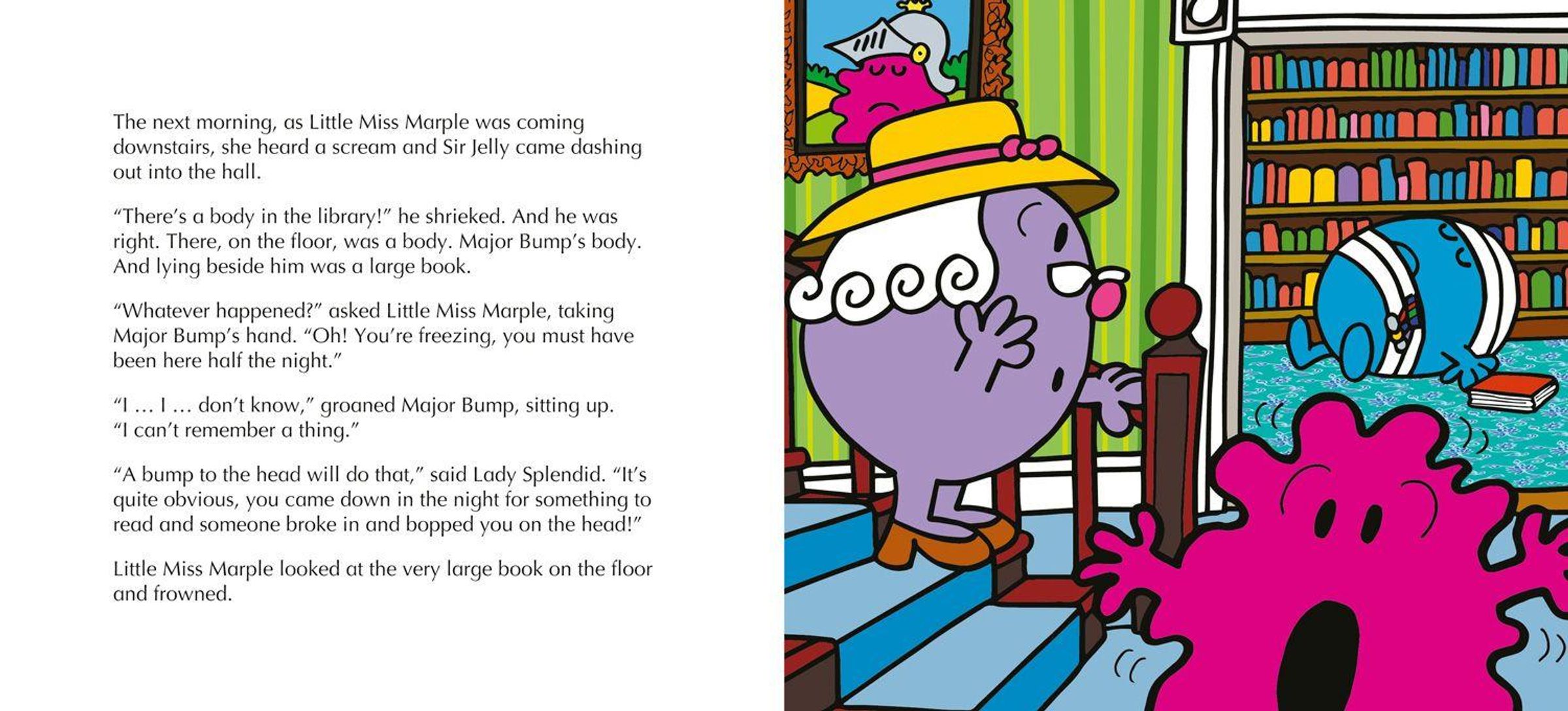Agatha Christie'sMiss Marple meets Roger Hargreaves' Mr Men and Little Miss in this new story, written and illustrated by Adam Hargreaves. Loosely inspired by The Body in the Library, but with a light and humorous twist for younger fans, this is a mystery that only someone with a deep understanding of human nature can solve!