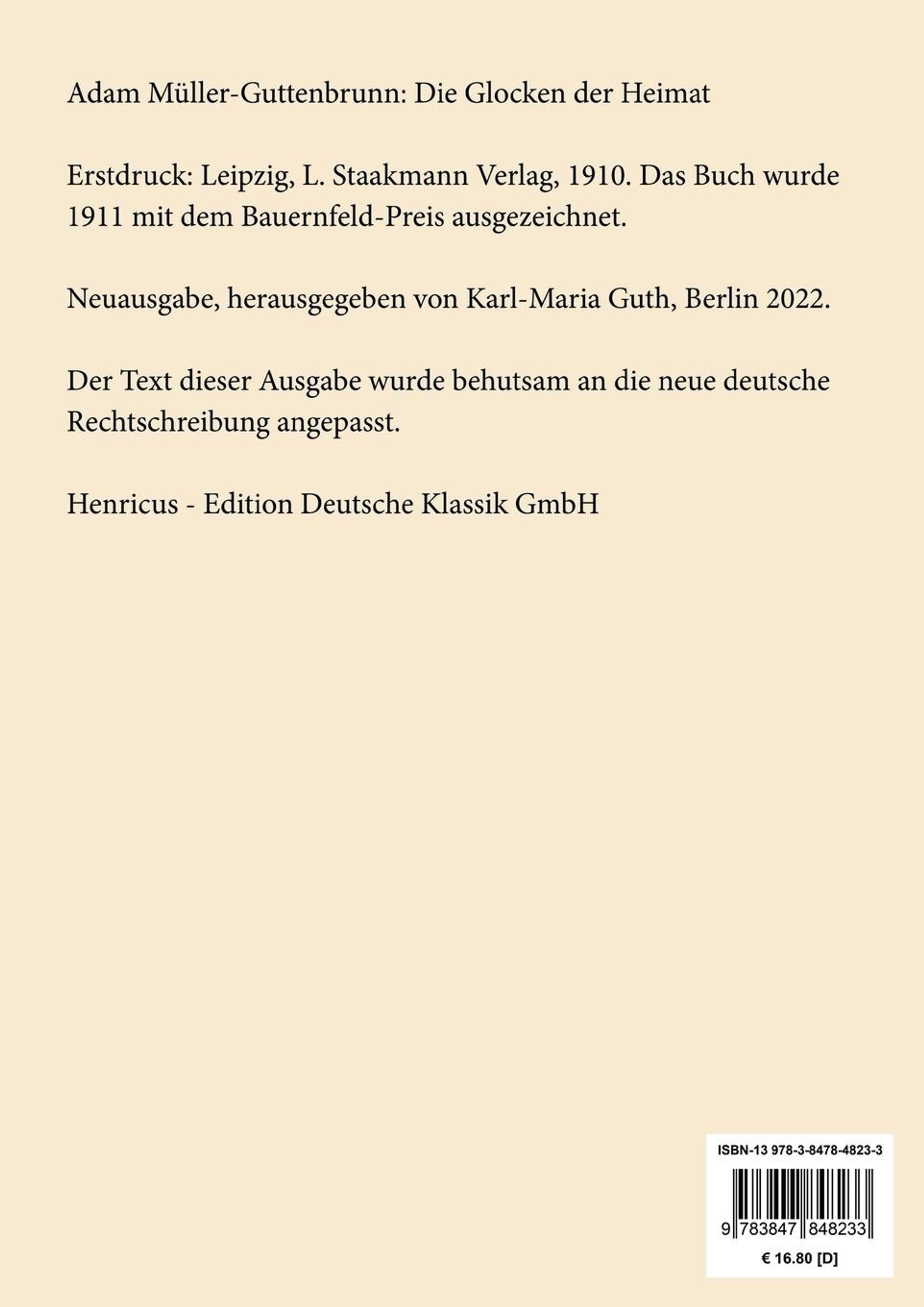 Adam Müller-Guttenbrunn: Die Glocken der Heimat Lesefreundlicher Großdruck in 16-pt-Schrift