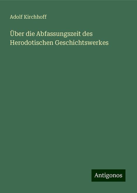 Adolf Kirchhoff: Kirchhoff, A: Über die Abfassungszeit des Herodotischen Gesc, Fester Einband