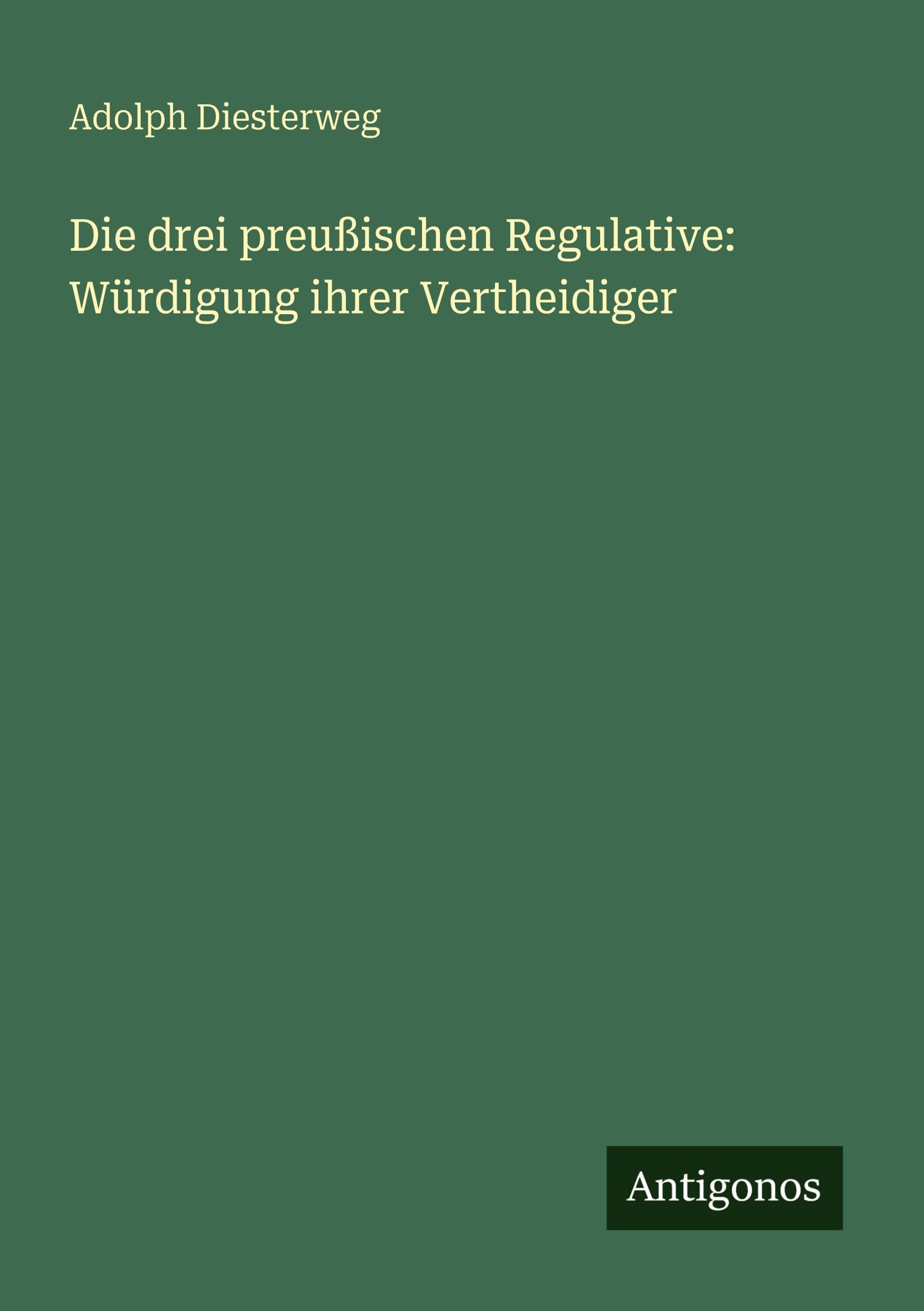 Adolph Diesterweg: Die drei preußischen Regulative: Würdigung ihrer Vertheidiger, Kartoniert / Broschiert
