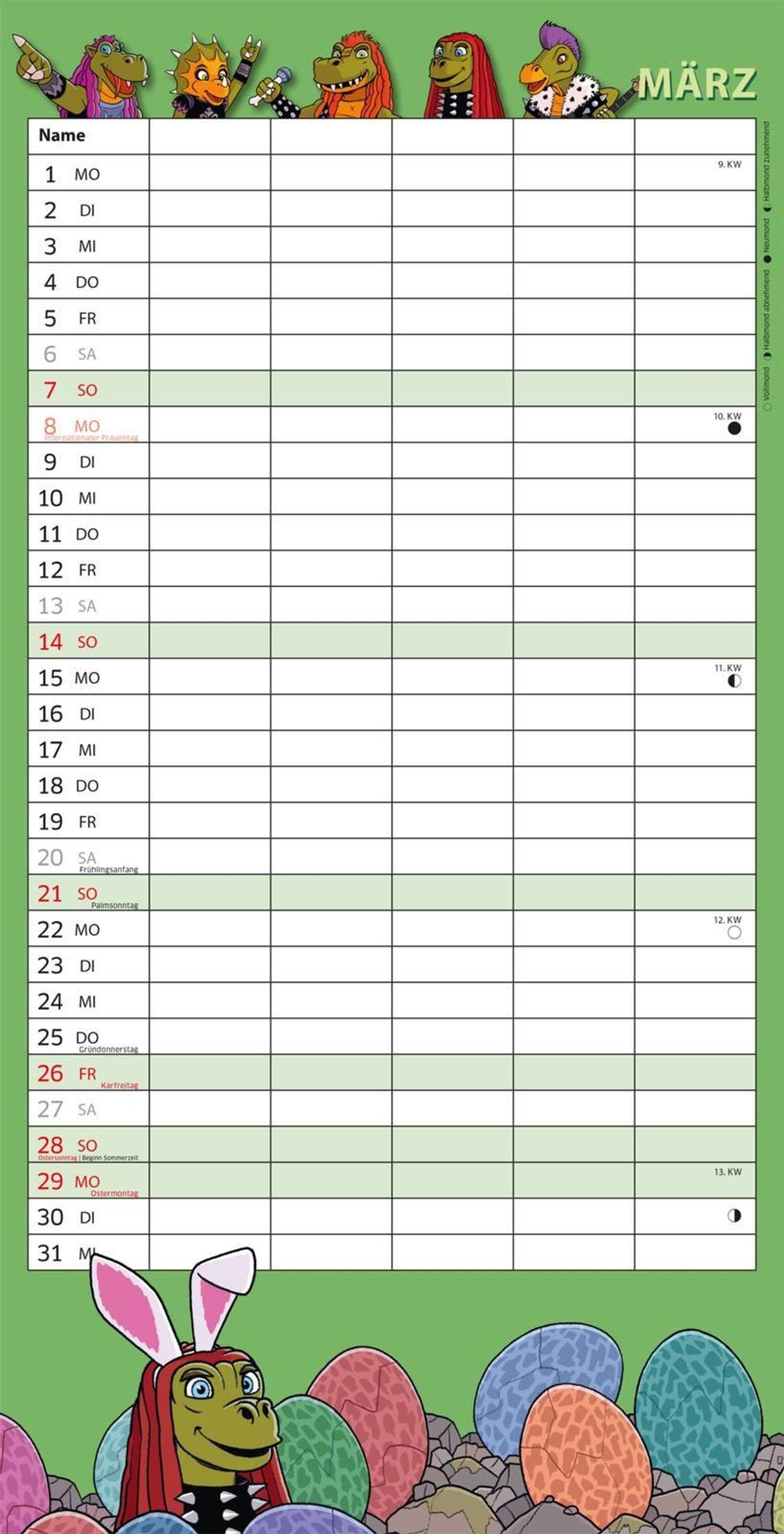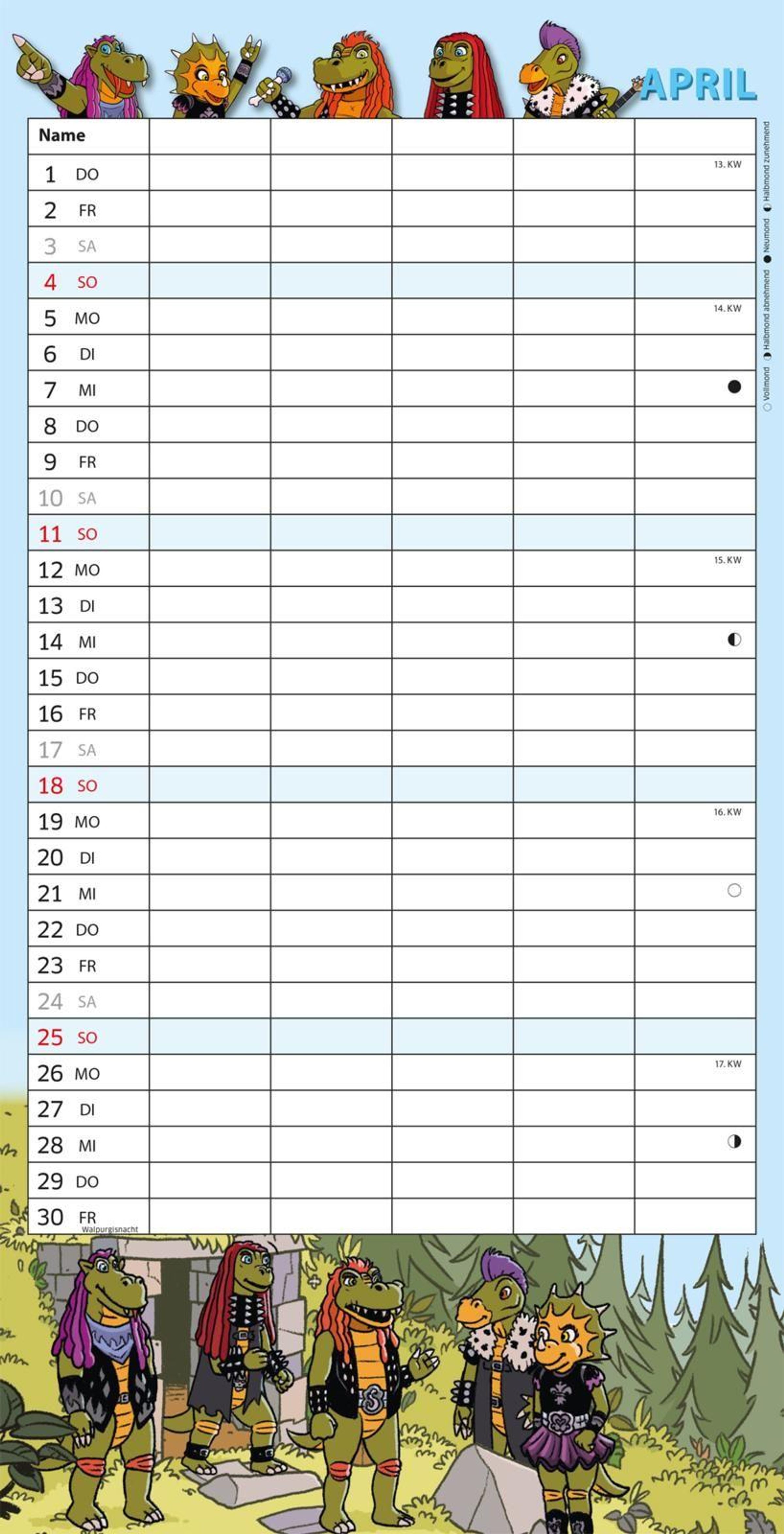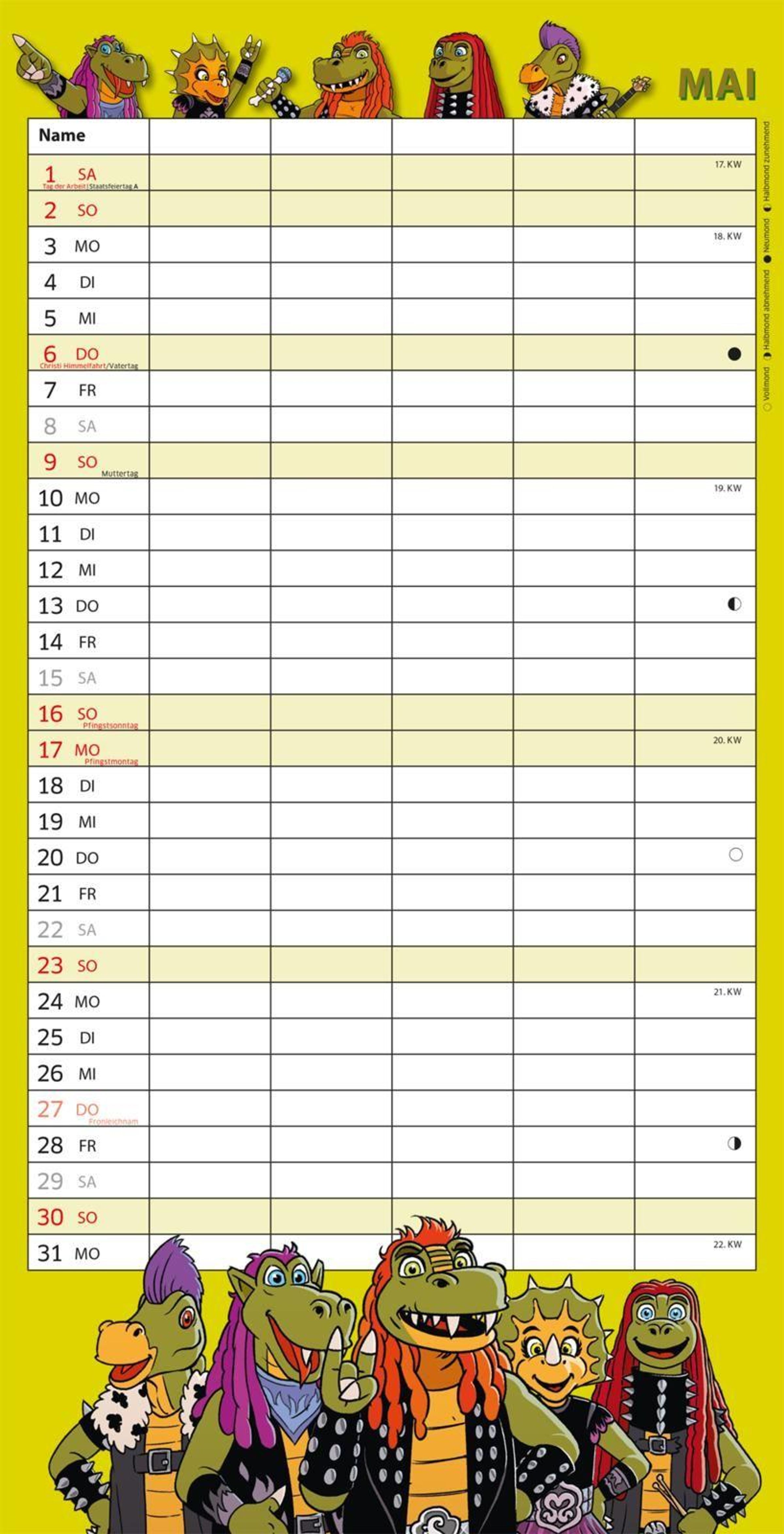 - Mit Illustrationen der Dinos von HeavySaurus: Die rockigen Illustrationen der bekannten Kinderband gestalten jeden Monat bunt, energiegeladen und sofort wiedererkennbar.