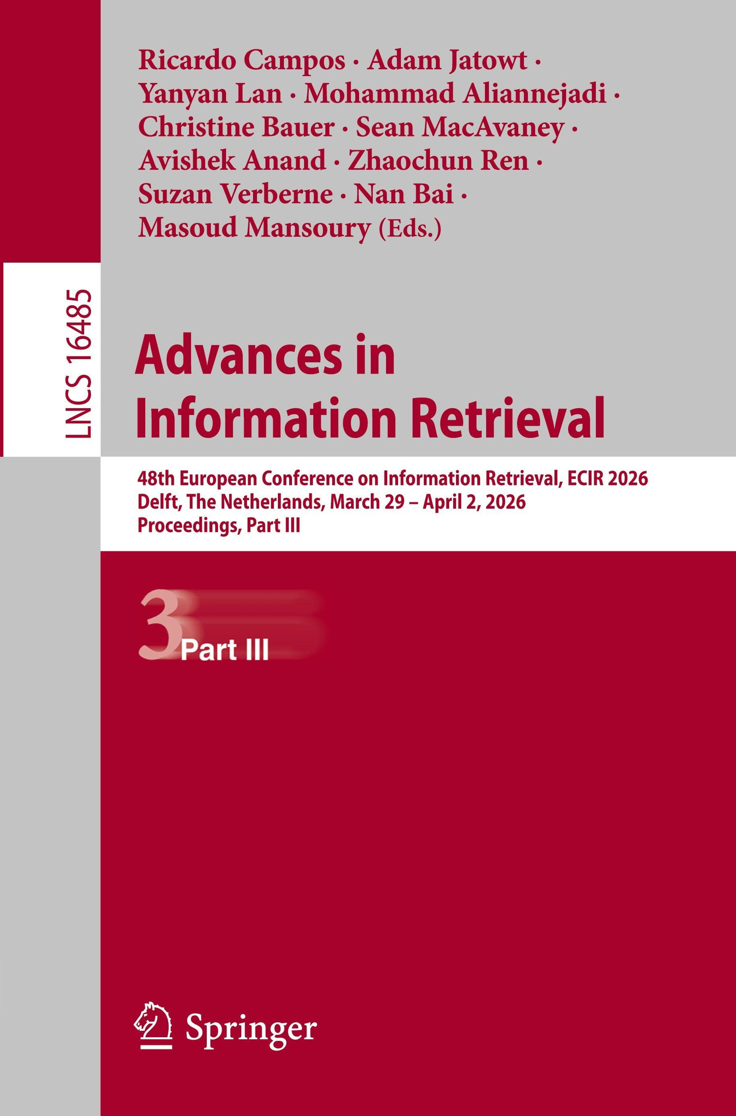 - 48th European Conference on Information Retrieval, ECIR 2026, Delft, The Netherlands, March 29 - April 2, 2026, Proceedings, Part III