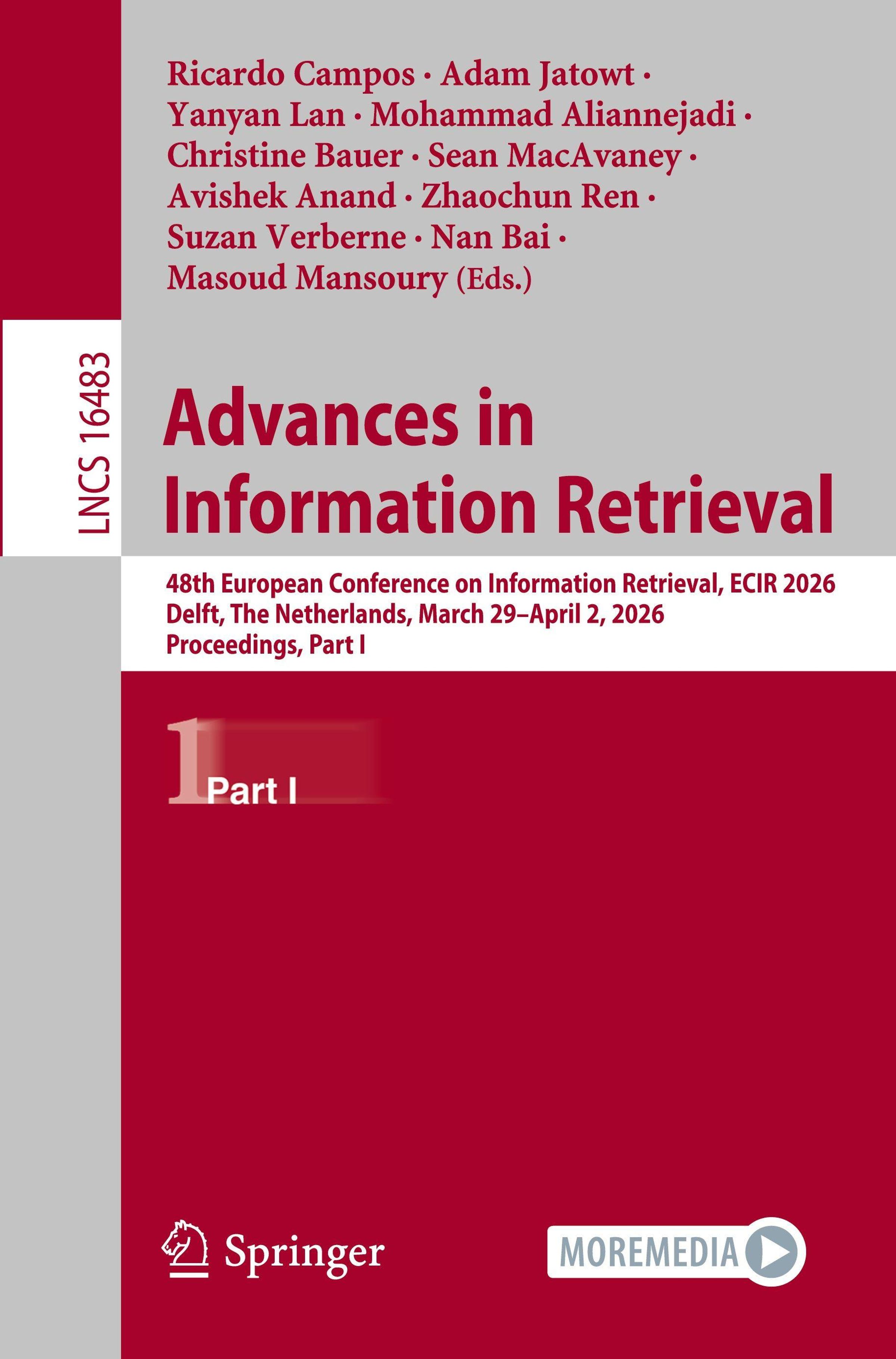 - 48th European Conference on Information Retrieval, ECIR 2026, Delft, The Netherlands, March 29 - April 2, 2026, Proceedings, Part I