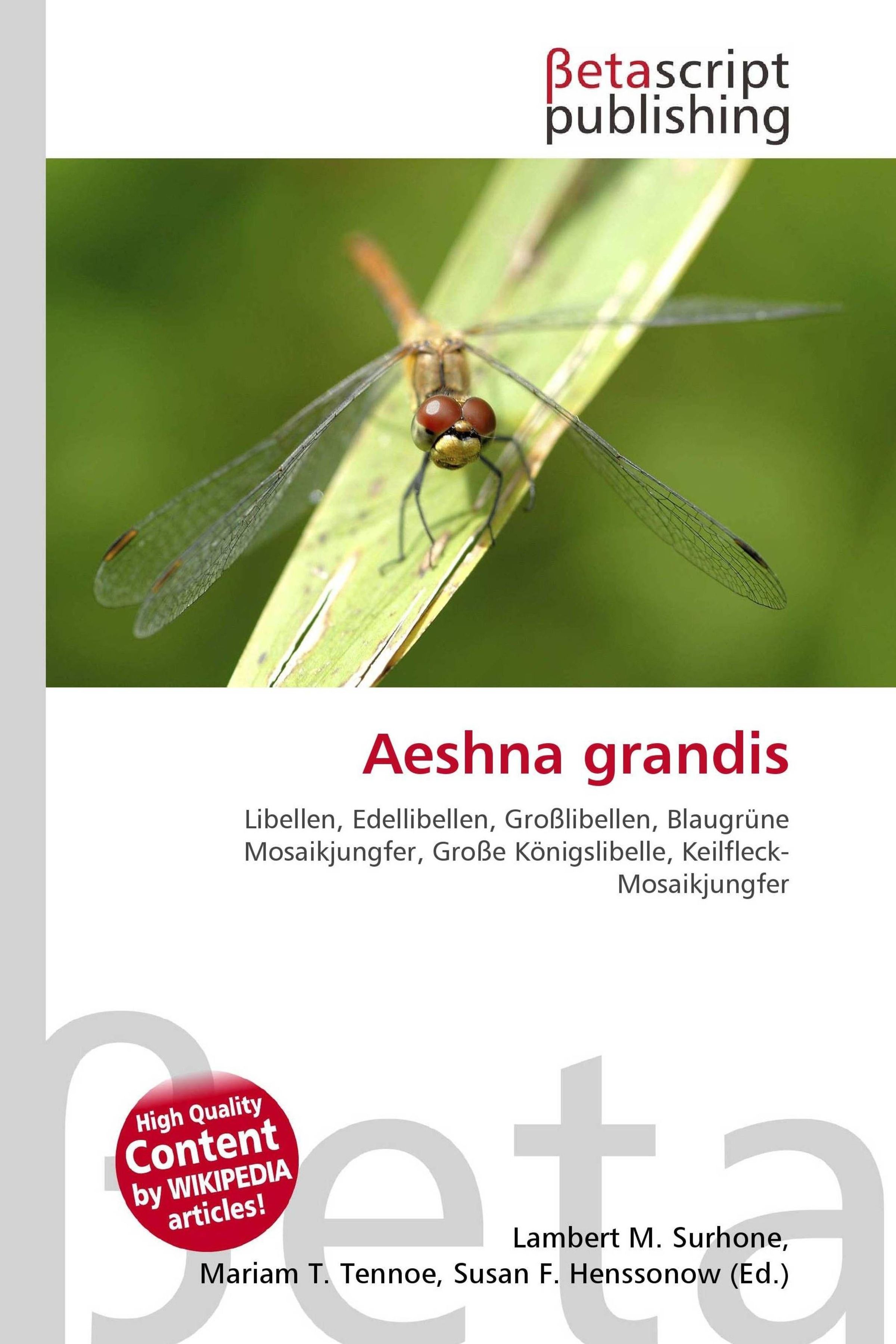 Titel: Aeshna grandis. Begriffe: Libellen, Edellibellen, Großlibellen. Logo: Betascript Publishing. Foto: Libelle auf grünem Blatt., Buch