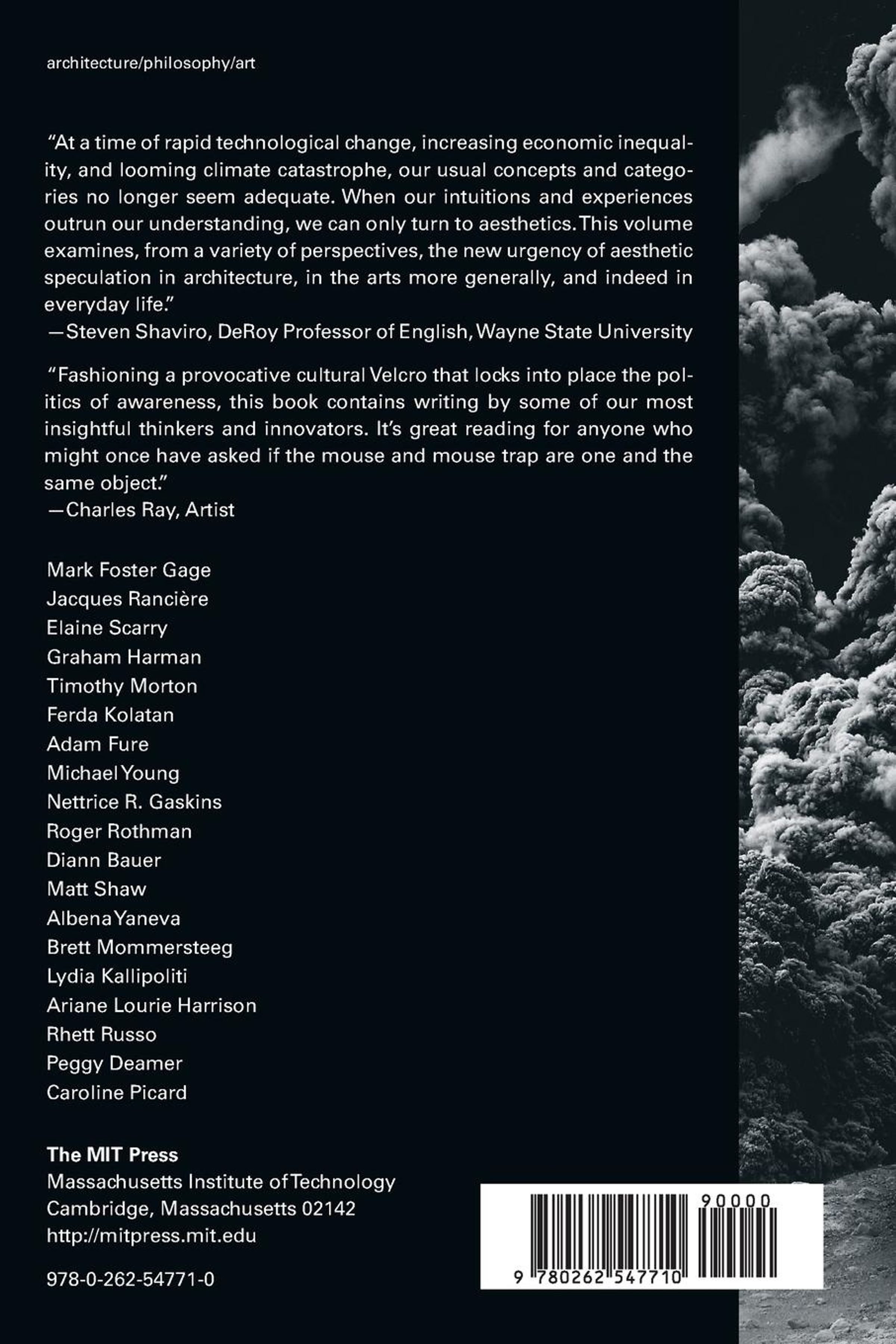 Mark Foster Gage, Jacques Rancière, Elaine Scarry, Graham Harman, Timothy Morton, Ferda Kolatan, Adam Fure, Michael Young, Nettrice R. Gaskins, Roger Rothman, Diann Bauer, Matt Shaw, Albena Yaneva, Brett Mommersteeg, Lydia Kallipoliti, Ariane Lourie Harrison, Rhett Russo, Peggy Deamer, Caroline Picard