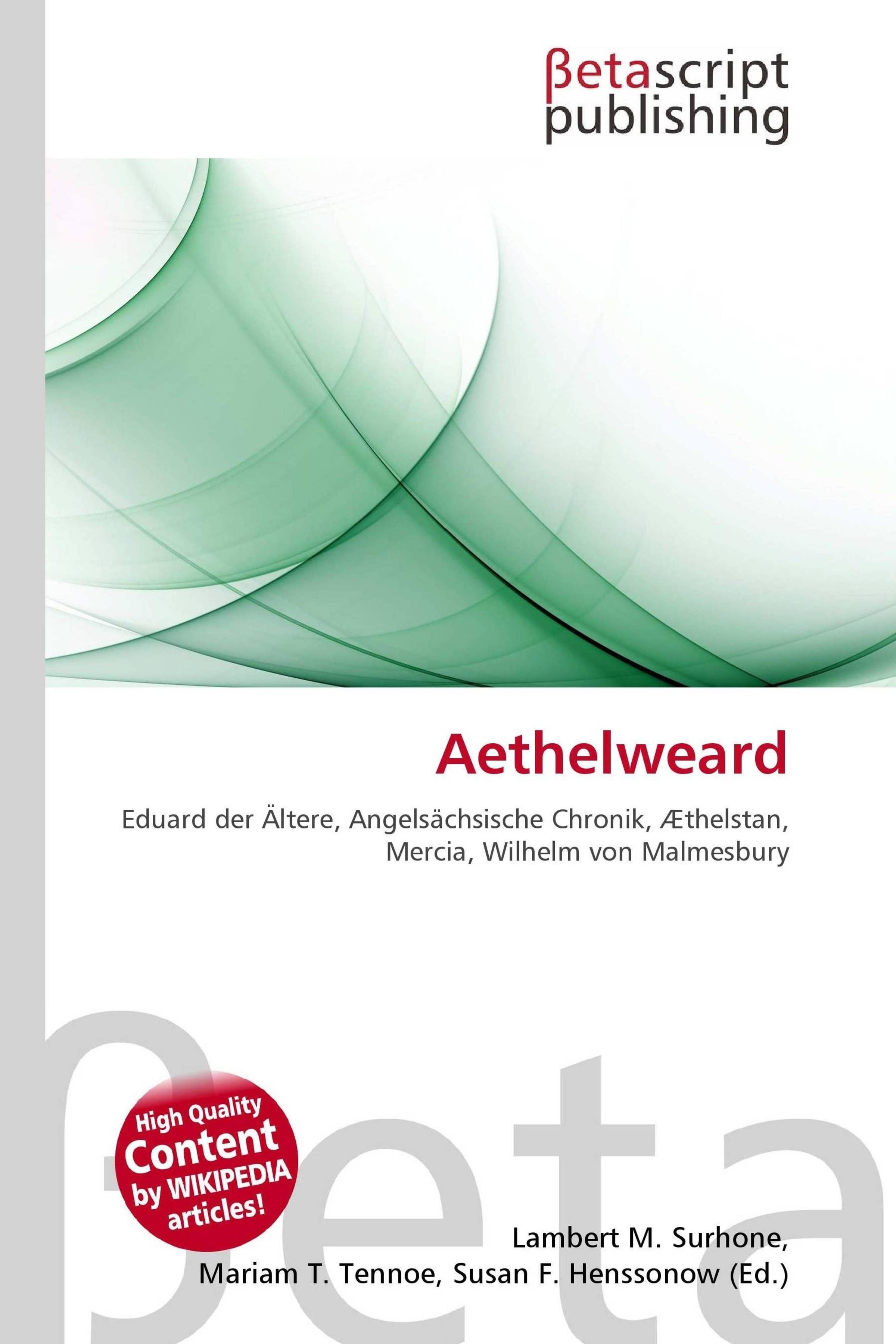 Please note that the content of this book primarily consists of articles available from Wikipedia or other free sources online.Æthelweard (auch Ethelweard oder Aethelweard; * 904; 924 in Oxford) war ein Sohn von Edward dem Älteren und Elfleda. Dem B-Manuskript der Angelsächsischen Chronik (Worcester Chronicle) zufolge, überlebte er seinen Vater um 16 Tage, wobei keine Angabe gemacht wird, dass Æthelweard zum König gekrönt worden sei und ihm auch keine Regierungszeit zugeordnet wird. Erst in Quellen des 11. und 12. Jahrhunderts wird sein Name als König genannt und berichtet, er habe vier Wochen regiert.