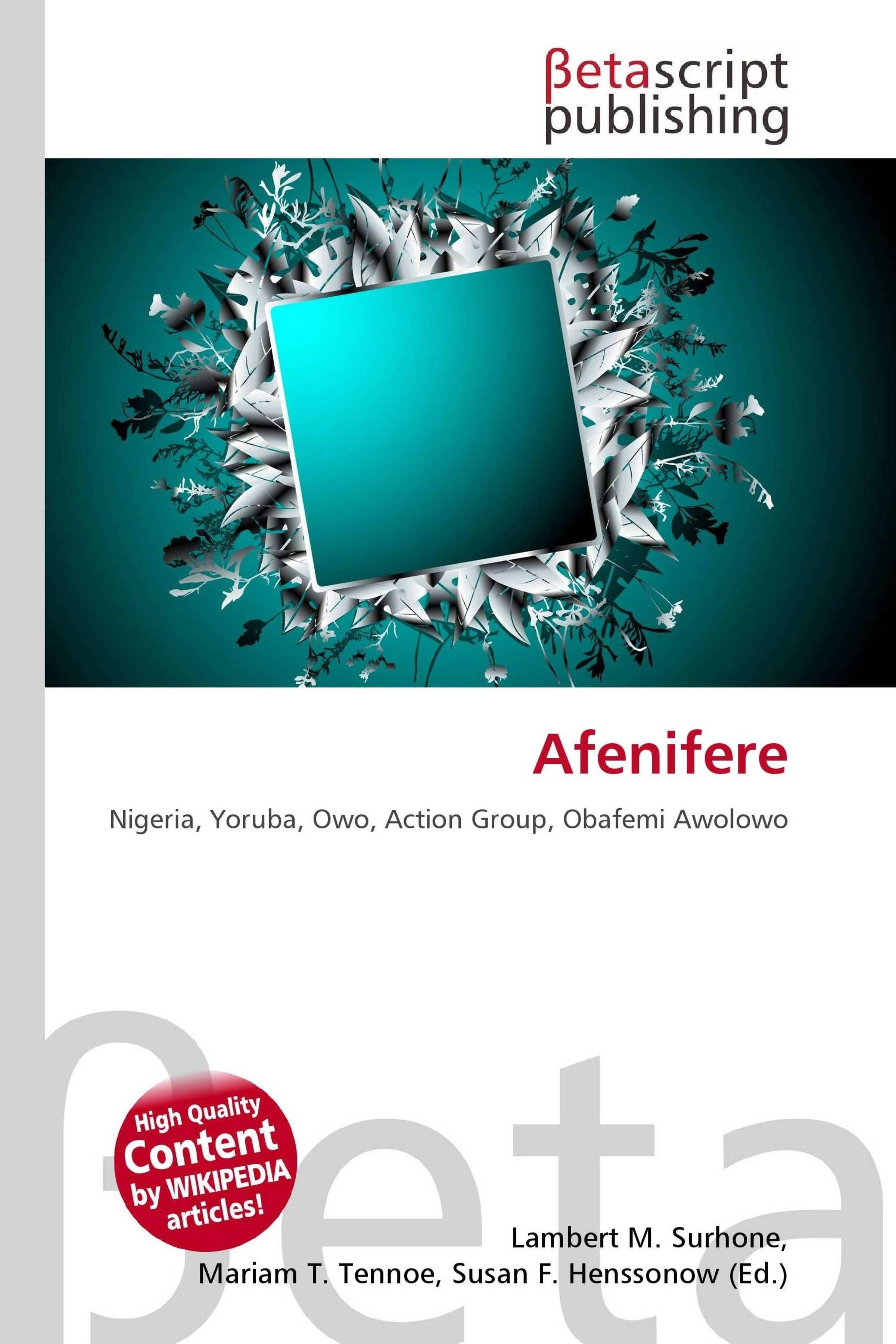 „betascript publishing“, „Afenifere“, „Nigeria, Yoruba, Owo, Action Group, Obafemi Awolowo“. Kunstwerk mit floralem Motiv., Buch