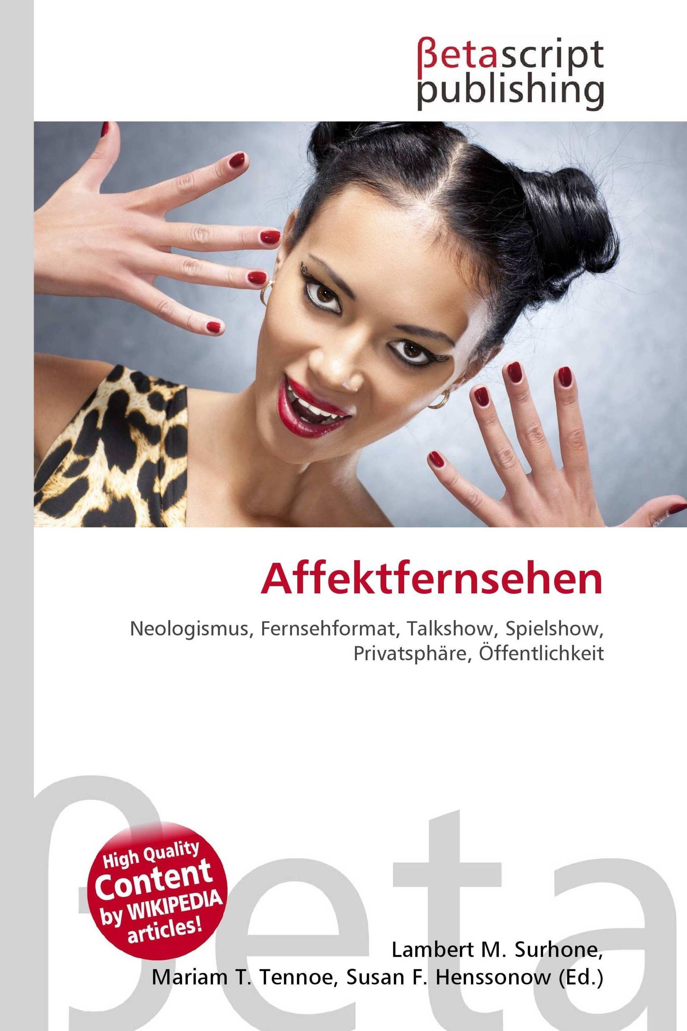 "Affektfernsehen, Neologismus, Fernsehformat, Talkshow, Spielshow, Privatsphäre, Öffentlichkeit." Logo oben, Frau mit roten Nägeln., Buch