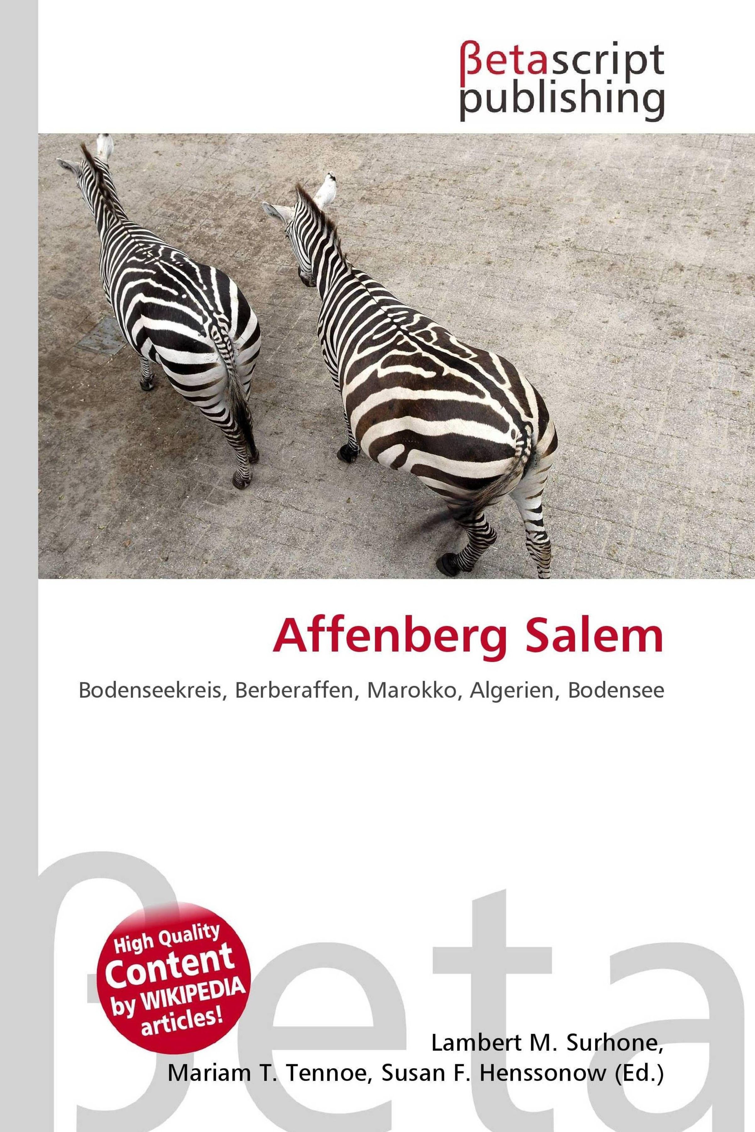 Text: "Affenberg Salem" und darunter "Bodenseekreis, Berberaffen, Marokko, Algerien, Bodensee". Zwei Zebras auf Steinboden., Buch