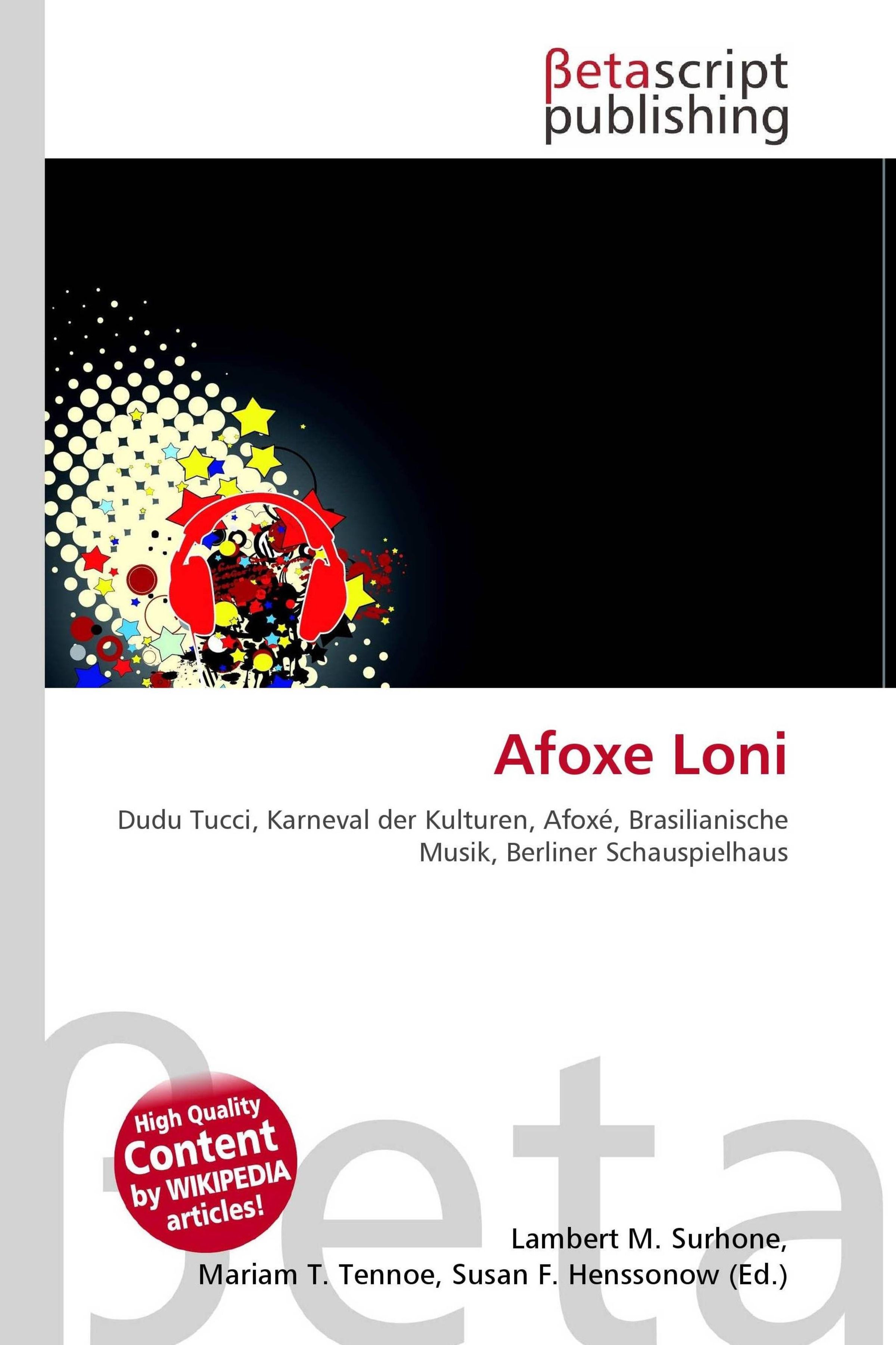 Please note that the content of this book primarily consists of articles available from Wikipedia or other free sources online. Afoxé Loni ist eine brasilianisch-deutsche Musik- und Tanzgruppe aus Berlin. Die künstlerischen Leiter sind Dudu Tucci (Perkussion) und Murah Soares (Choreographie). Afoxé Loni wurde 1996 anlässlich des Berliner Karnevals der Kulturen gegründet und führt die Straßenparade seitdem an der Spitze des Umzugs an. Die Gruppe steht in der Tradition brasilianischer Afoxé-Blocos, gespielt werden traditionelle brasilianische Rhythmen und Kompositionen von Dudu Tucci. Charakteristisch sind die weiß-goldgelben Kostüme des Blocos.