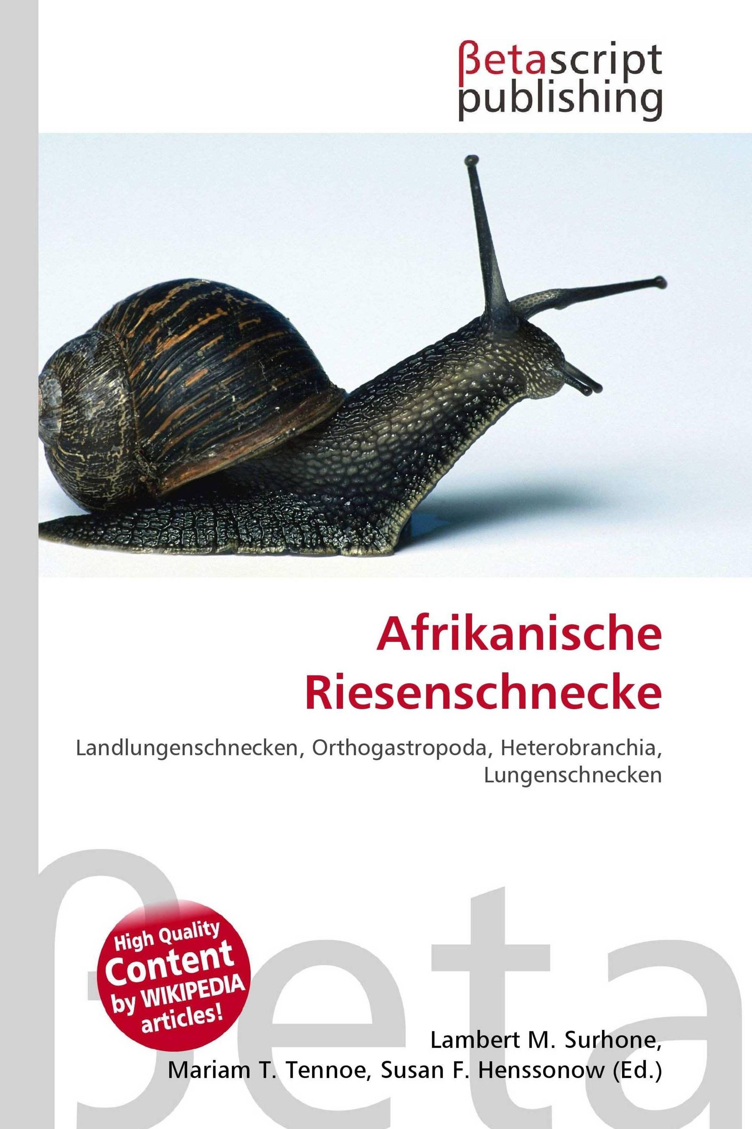 "Afrikanische Riesenschnecke" in roter Schrift, darunter eine braune Schnecke mit gestreiftem Gehäuse. Oben "Betascript Publishing"., Buch