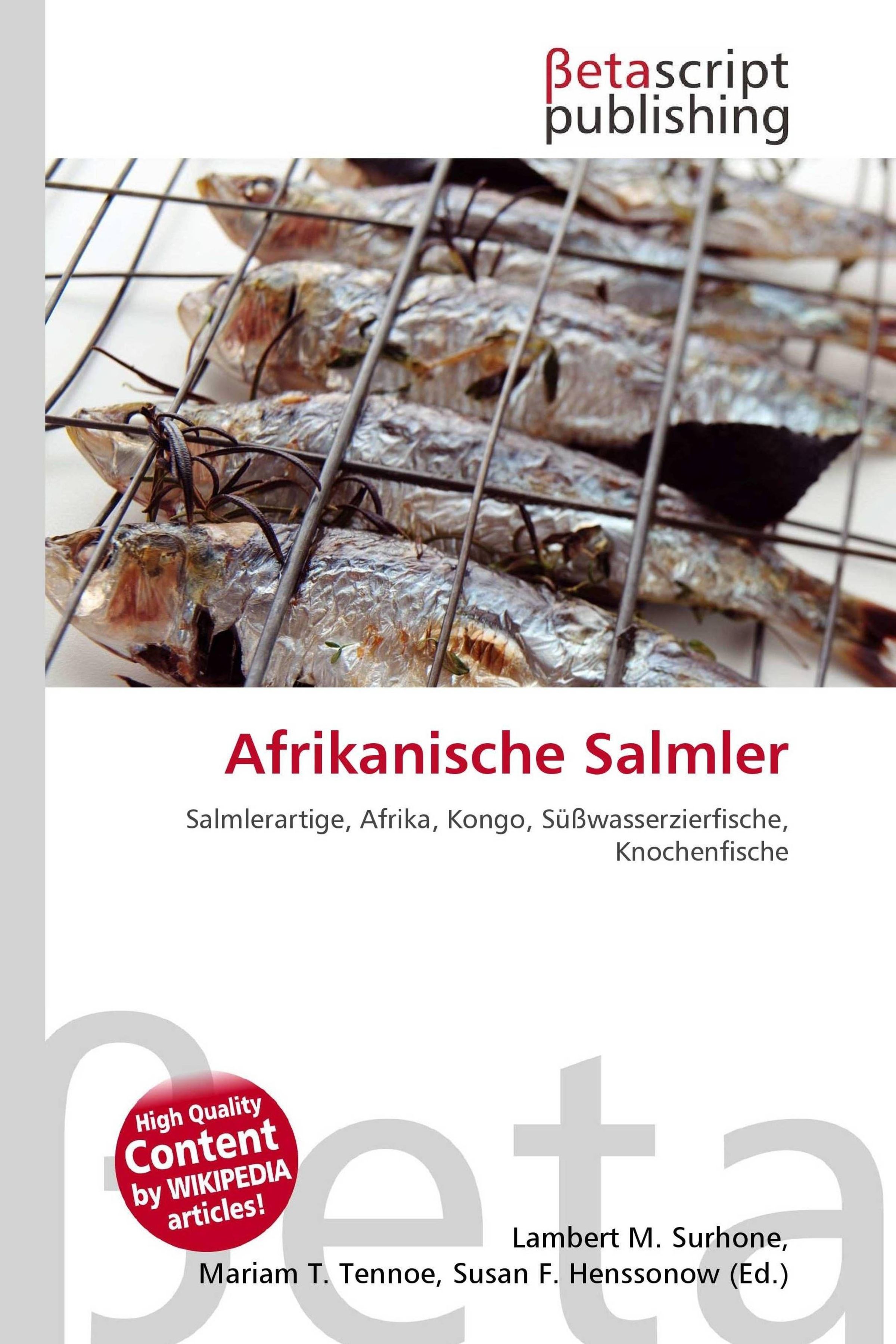 Please note that the content of this book primarily consists of articles available from Wikipedia or other free sources online. Die Afrikanischen Salmler (Alestidae), auch Großaugensalmler genannt, sind eine Familie aus der Ordnung der Salmlerartigen. Die Fische leben in den Süßgewässern des tropischen und subtropischen Afrika, die meisten Arten kommen aus dem Stromgebiet des Kongo. Einige Arten sind sehr schöne und beliebte Süßwasserzierfische. Großaugensalmler haben einen gestreckten, manchmal auch leicht hochrückigen Körper, der mit Cycloidschuppen bedeckt ist. Die meisten Arten haben große Rückenflossen, eine Fettflosse ist vorhanden. Das Maul ist oft leicht oberständig. Die Tiere haben zwei Reihen Zähne auf der Praemaxillare, die zweite mit Mahlzähnen. Afrikanische Salmler der Unterfamilie Alestiinae werden 3, 2 bis 60 Zentimeter lang, die Hydrocyninae erreichen Längen von einem halben bis 1, 35 Meter.
