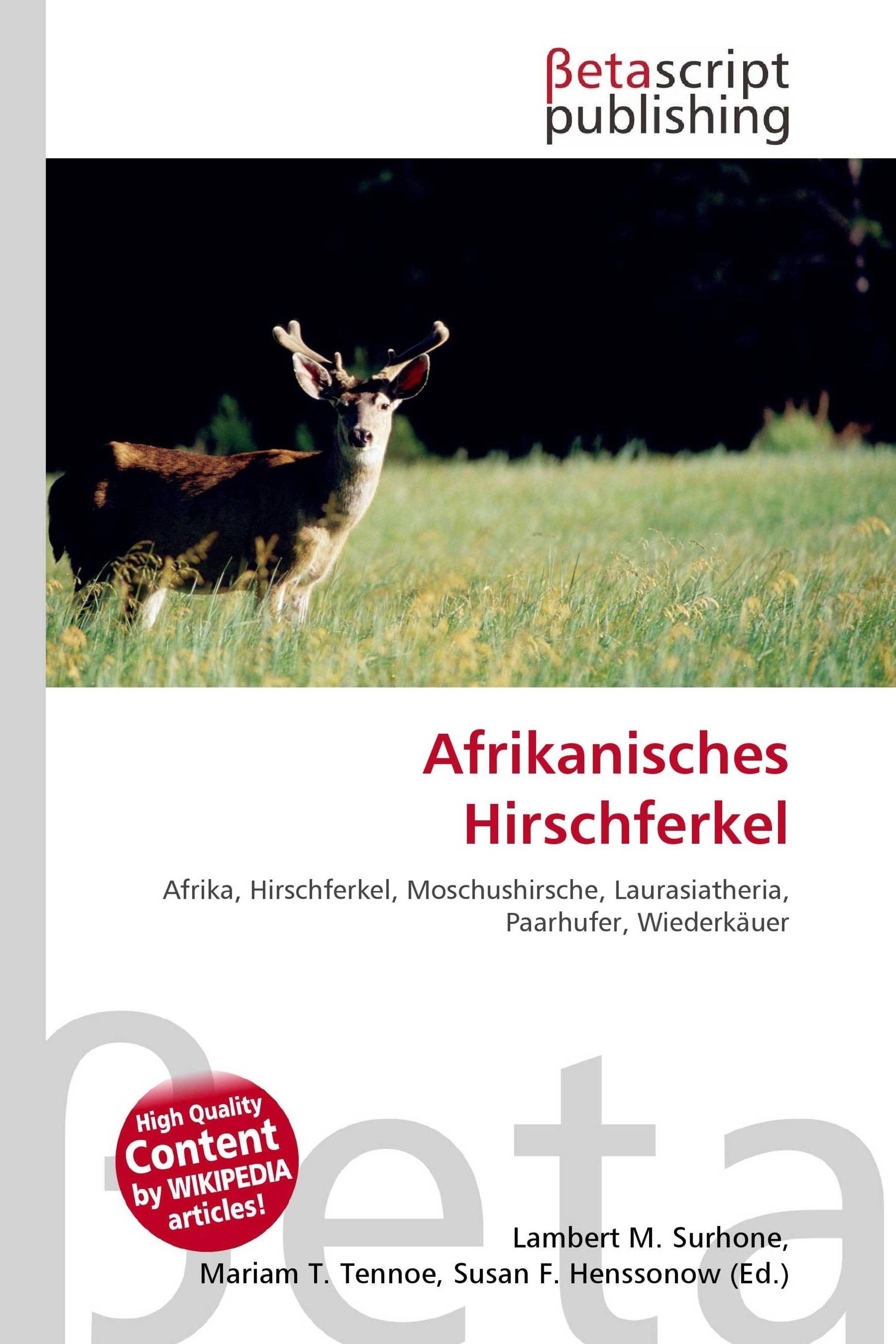 "Afrikanisches Hirschferkel" in roter Schrift; Foto eines Hirschs auf einer Wiese im Hintergrund., Buch
