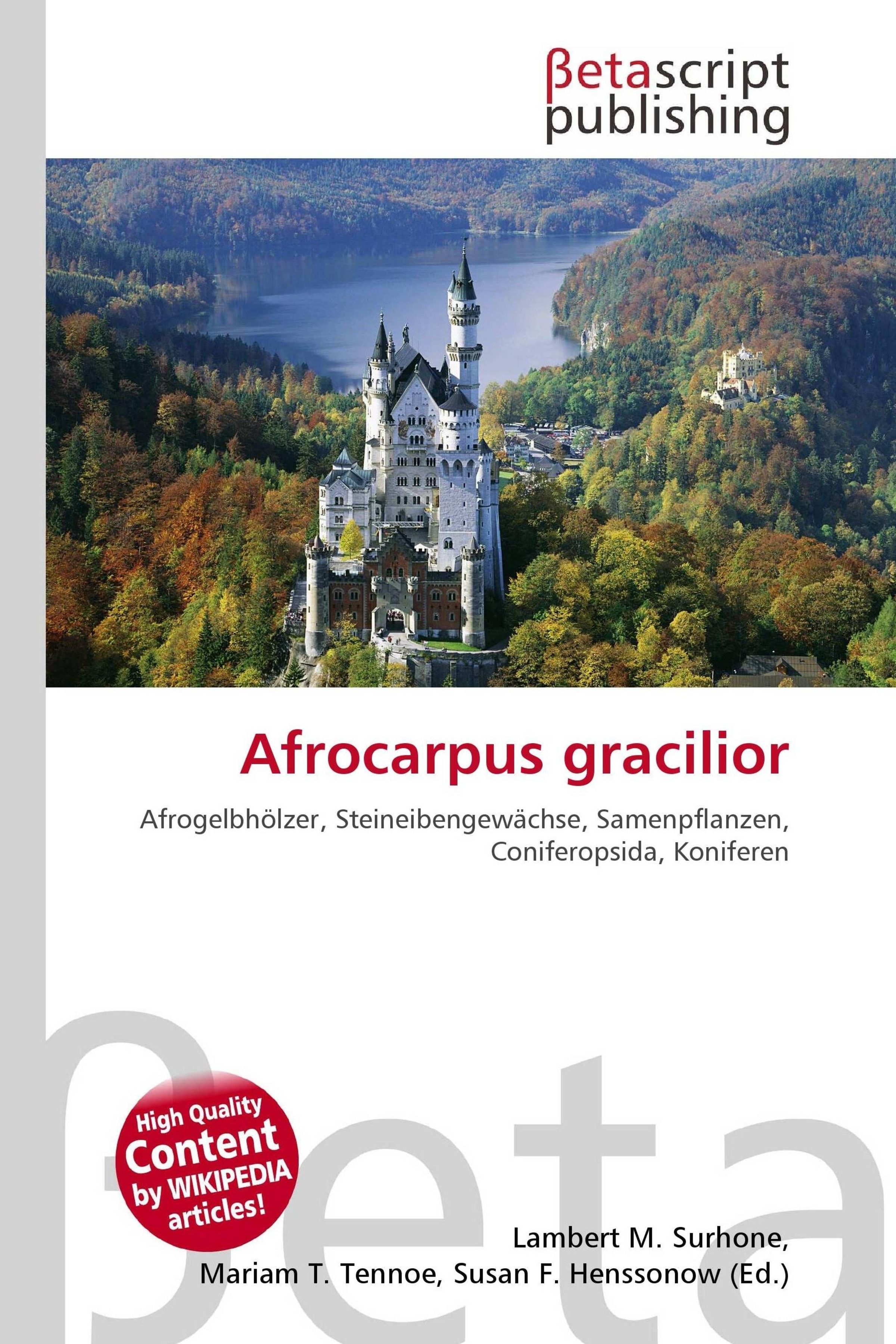 Afrocarpus gracilior; Afrogelenkbäume, Samenpflanzen; ein Schloss vor einem See und Waldlandschaft., Buch