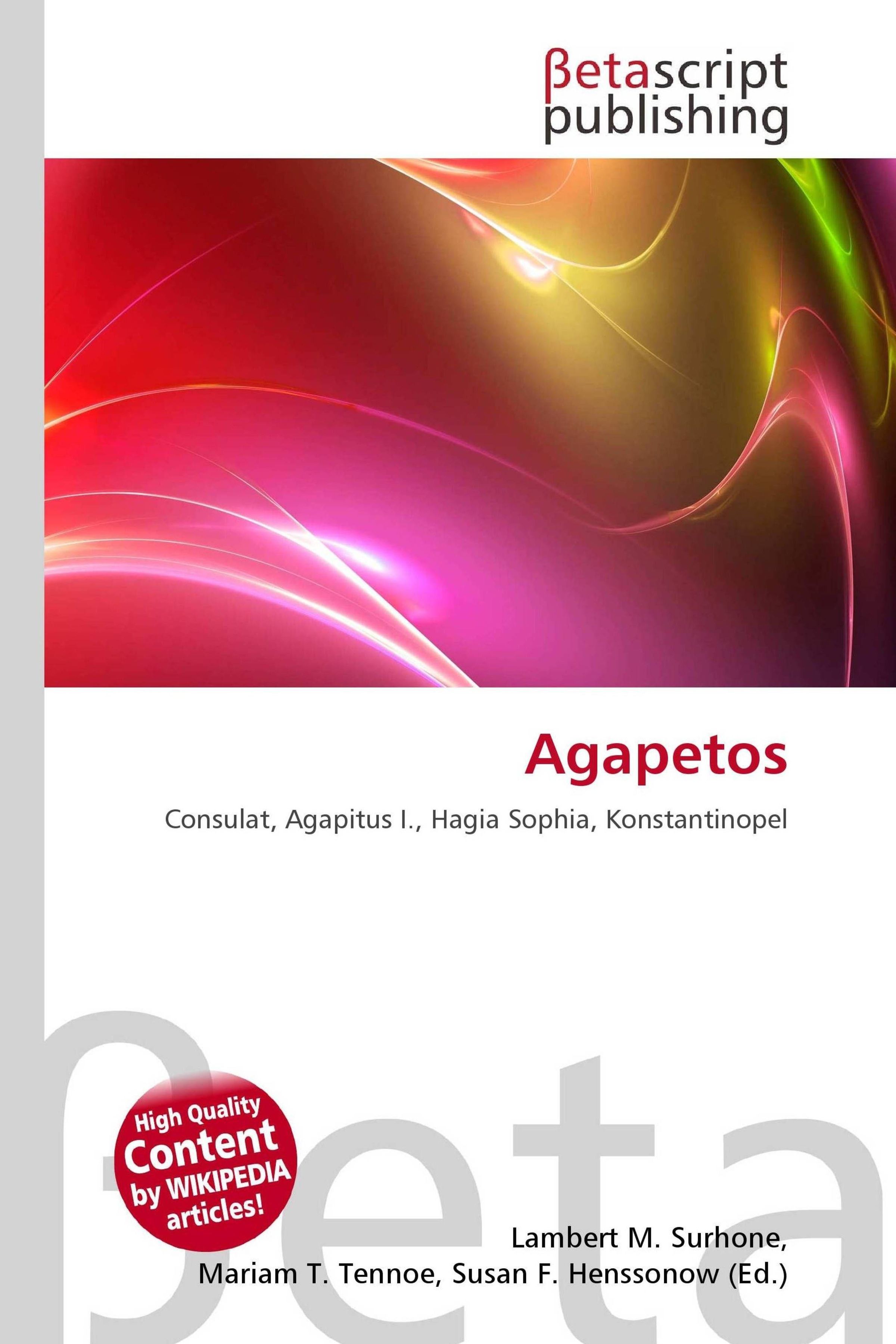 Text: Betascript Publishing, Agapetos, Konsul, Agapitus I., Hagia Sophia, Konstantinopel. Abstrakte Illustration in Rot- und Gelbtönen., Buch