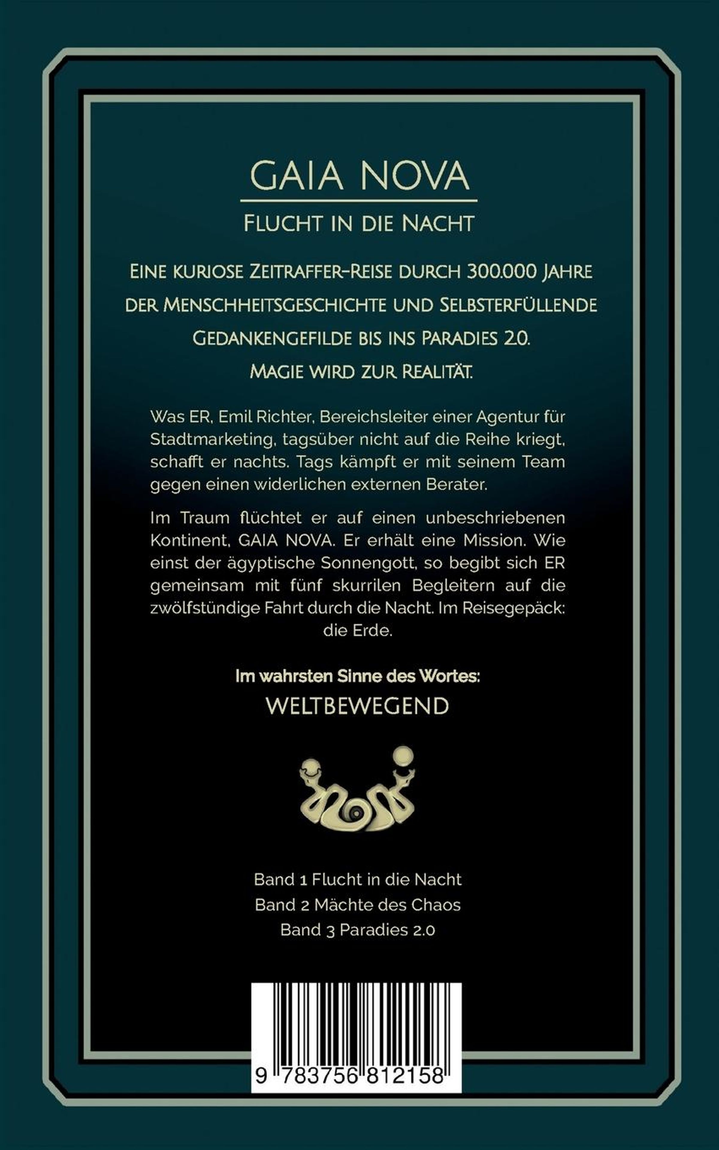 1.-3. Stunde Zwölf Stunden. Zwölf Tore. Ein Kontinent jenseits der Wirklichkeit. Willkommen in GAIA NOVA: einem Kontinent, geboren aus Bewusstsein, durchdrungen von Geschichte, geformt aus Licht und Schatten, Chaos und Liebe. Begleite Emil Richter, kurz ER, auf einer außergewöhnlichen Reise durch die zwölf Stunden der Nacht und das eigene Ich. Eine Flucht in eine heile Welt, die eigenen Dämonen dicht auf den Fersen. Zwischen Menschheitsgeschichte und Visionen einer neuen Welt entfaltet sich ein episches Werk, das Magie zur Realität werden lässt. Philosophisch. Magisch. Visionär. Eine Trilogie, die die Grenzen zwischen Traum und Wirklichkeit nicht nur überschreitet - sondern neu definiert.