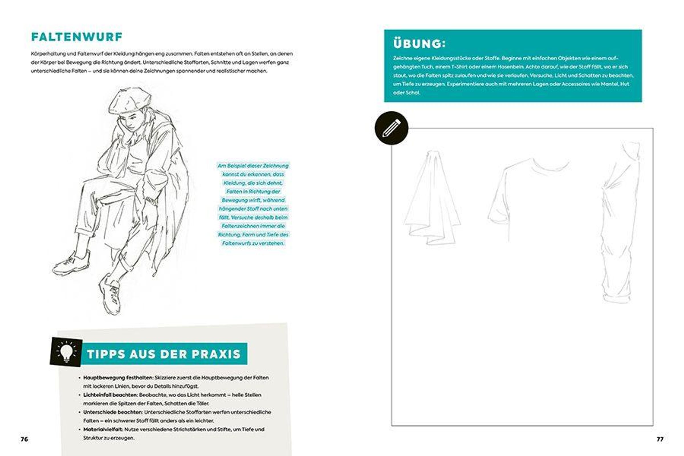 Menschen zeichnen gelingt am besten, wenn Theorie und Praxis Hand in Hand gehen. Dieses Übungsbuch wurde als ergänzender Band zum Grundlagenbuch " Richtig zeichnen lernen Menschen" entwickelt - gemeinsam bilden sie ein durchdachtes Lernsystem, das dich Schritt für Schritt begleitet: vom ersten Strich bis zu deinem ganz persönlichen Zeichenstil.