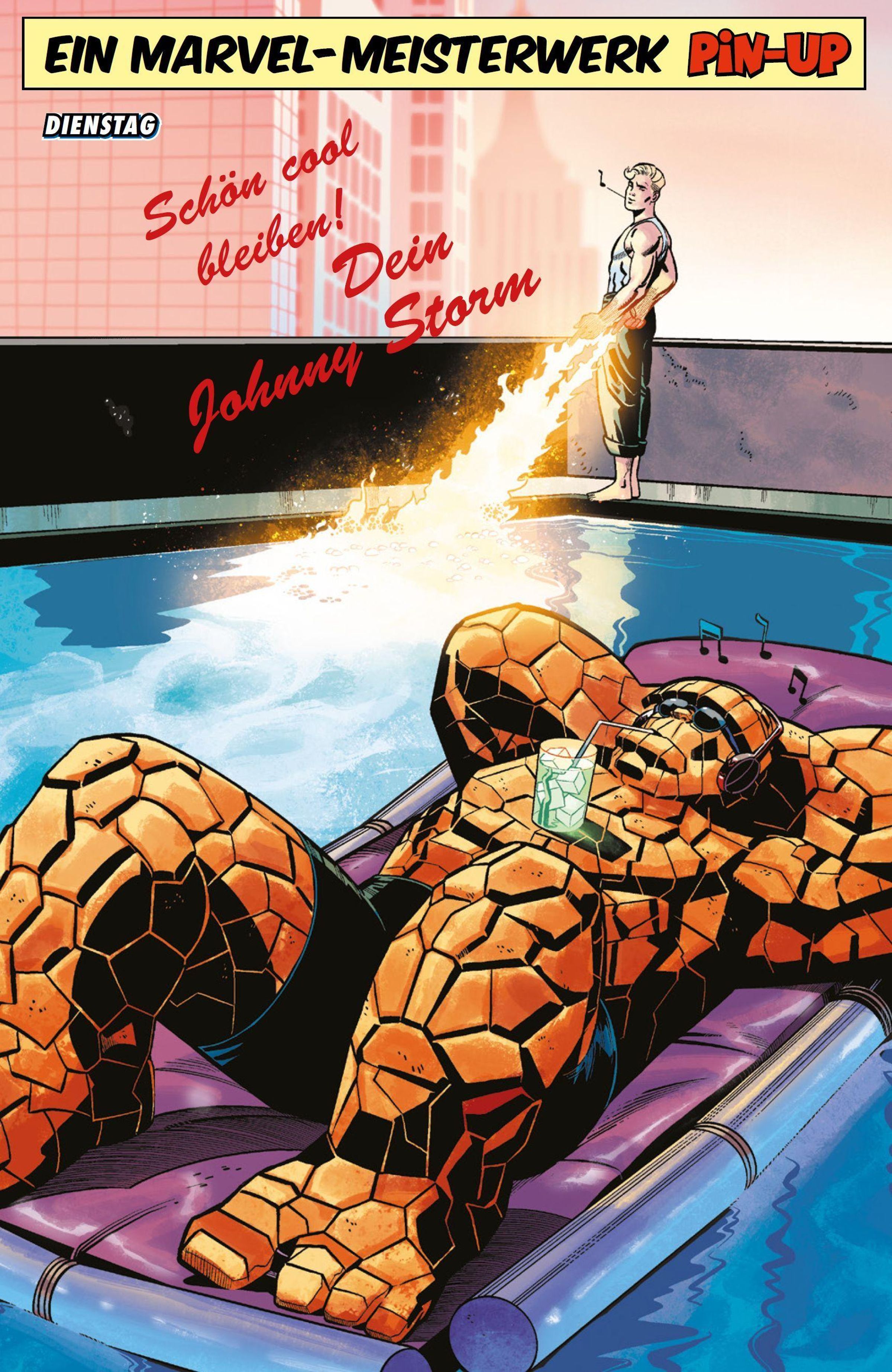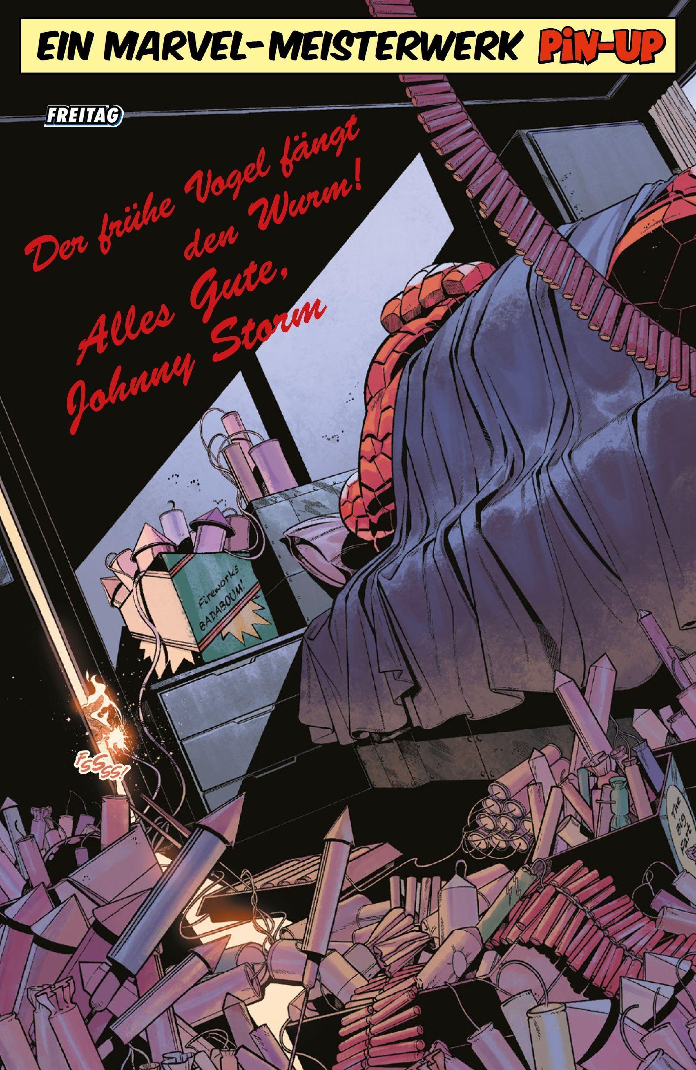 Diese Anthologie präsentiert neue F4-Storys von Mark Waid (Avengers), Jonathan Hickman (X-Men), Dustin Weaver (Infinity), Mark Buckingham (Fables), Dan Slott (Spider-Man), Marcos Martín (Daredevil), Ron Frenz (Spider-Girl) und anderen Comic-Stars.