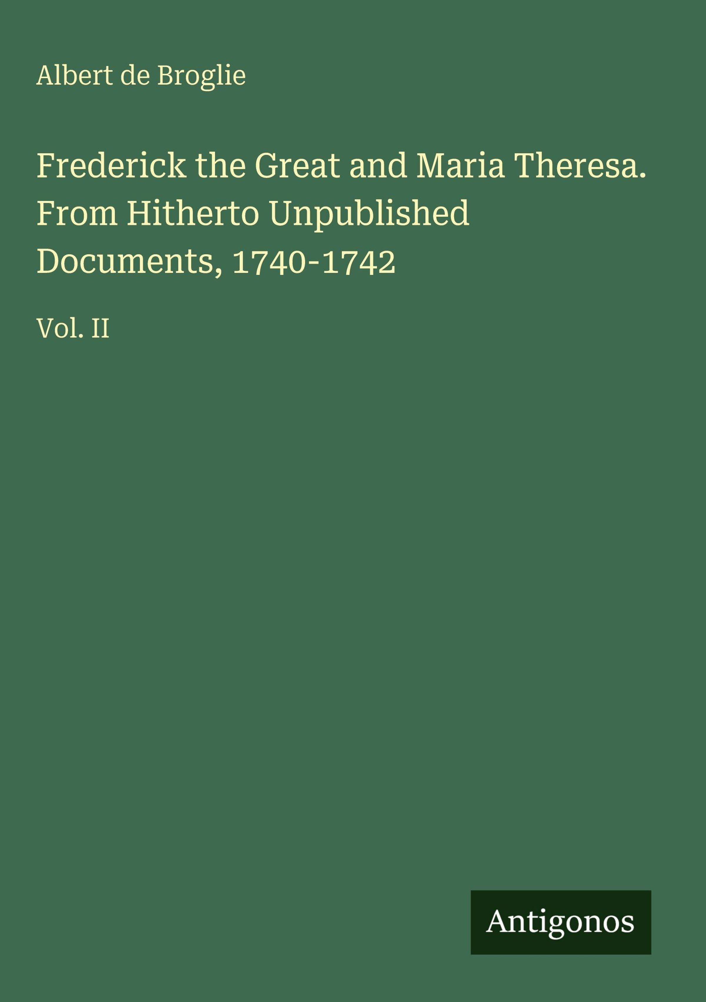 Albert De Broglie: Frederick the Great and Maria Theresa. From Hitherto Unpublished Documents, 1740-1742, Gebunden