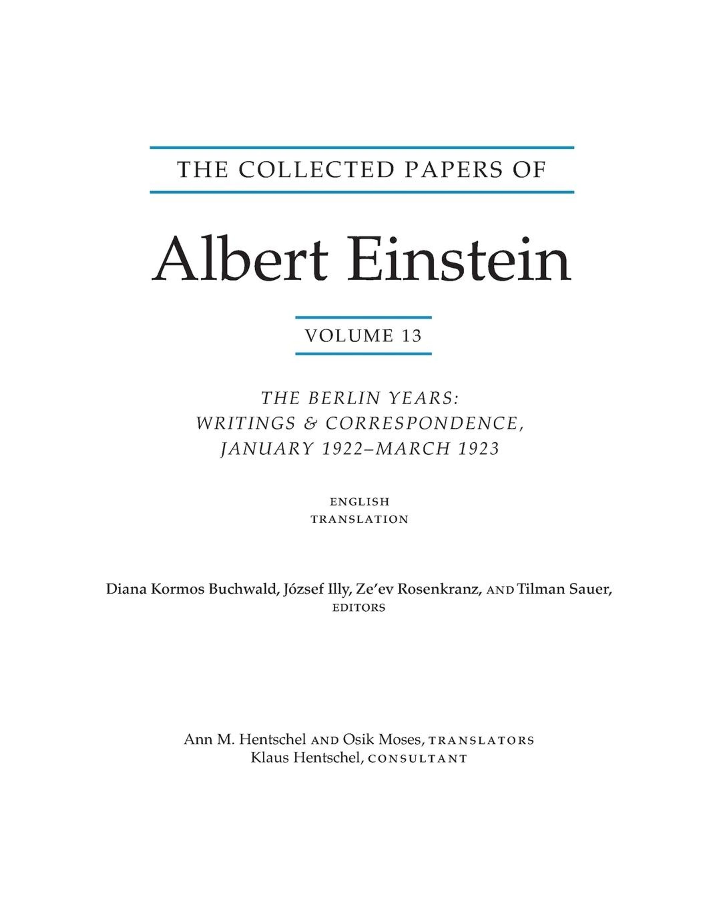 Every document in The Collected Papers of Albert Einstein appears in the language in which it was written, and this supplementary paperback volume presents the English translations of select portions of non-English materials in Volume 13. This translation does not include notes or annotation of the documentary volume and is not intended for use without the original language documentary edition which provides the extensive editorial commentary necessary for a full historical and scientific understanding of the documents.