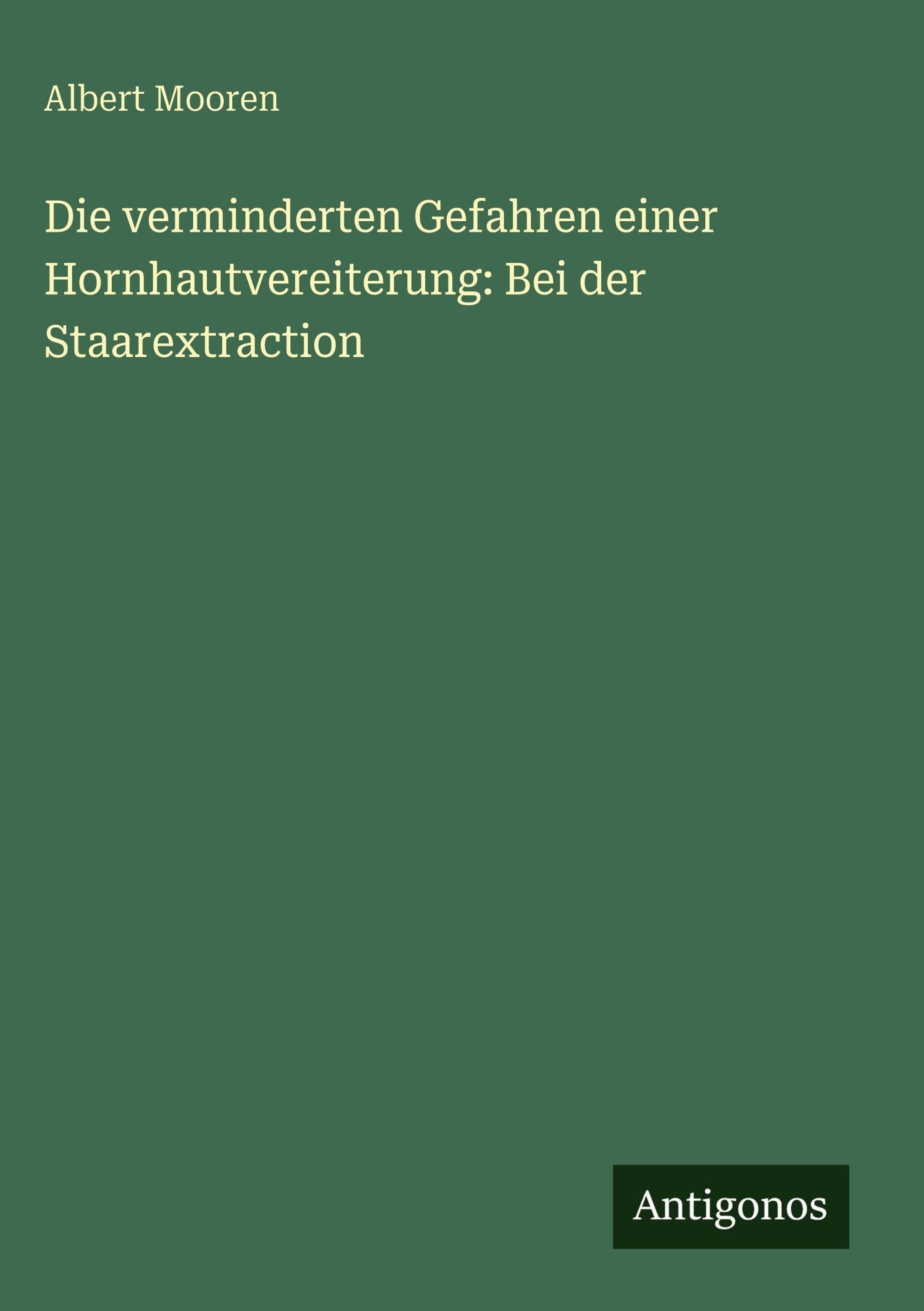 Albert Mooren: Die verminderten Gefahren einer Hornhautvereiterung: Bei der Staarextraction, Gebunden