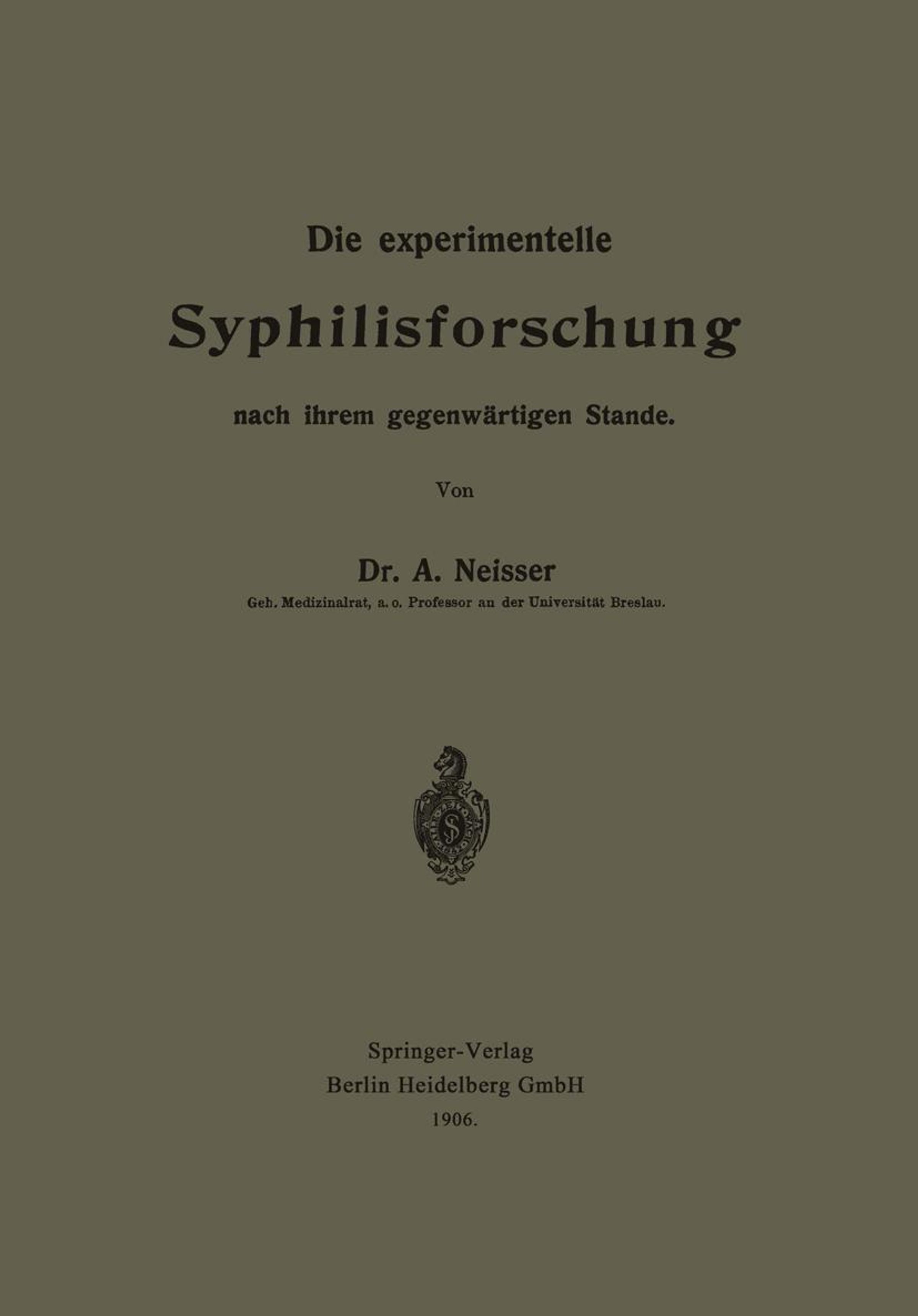 Die experimentelle Syphilisforschung nach ihrem gegenwärtigen Stande