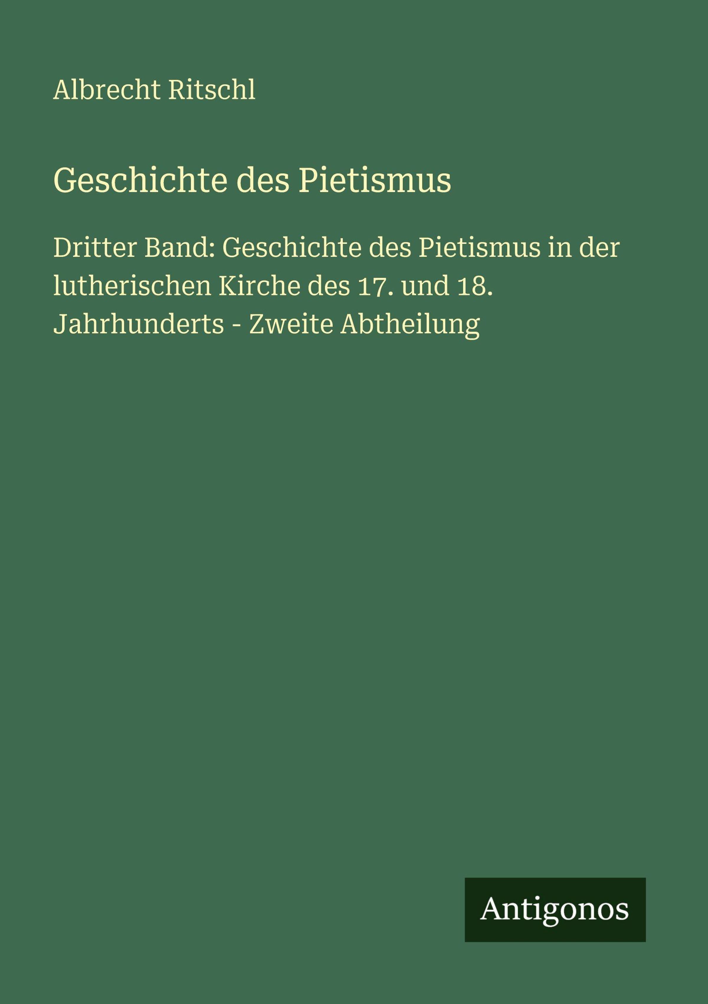 - Dritter Band: Geschichte des Pietismus in der lutherischen Kirche des 17. und 18. Jahrhunderts - Zweite Abtheilung
