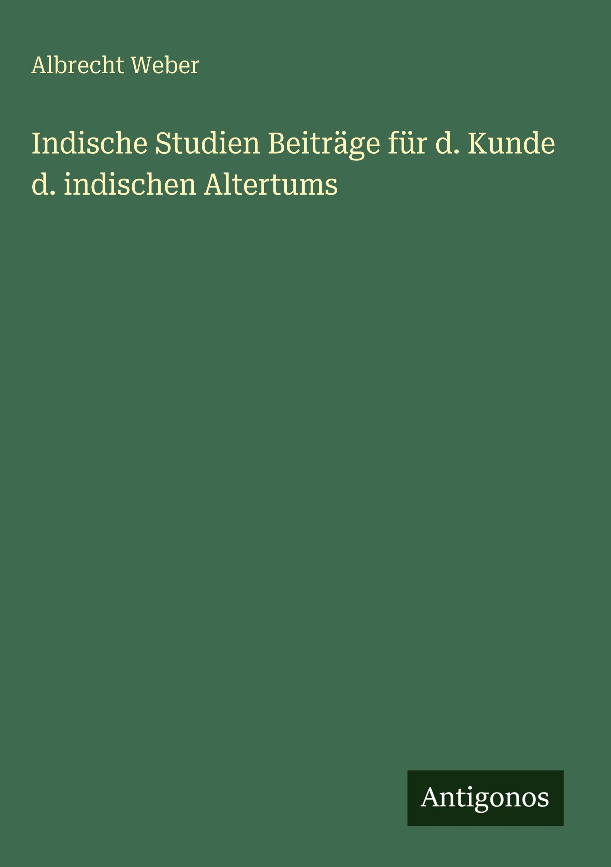 Albrecht Weber: Indische Studien Beiträge für d. Kunde d. indischen Altertums, Gebunden