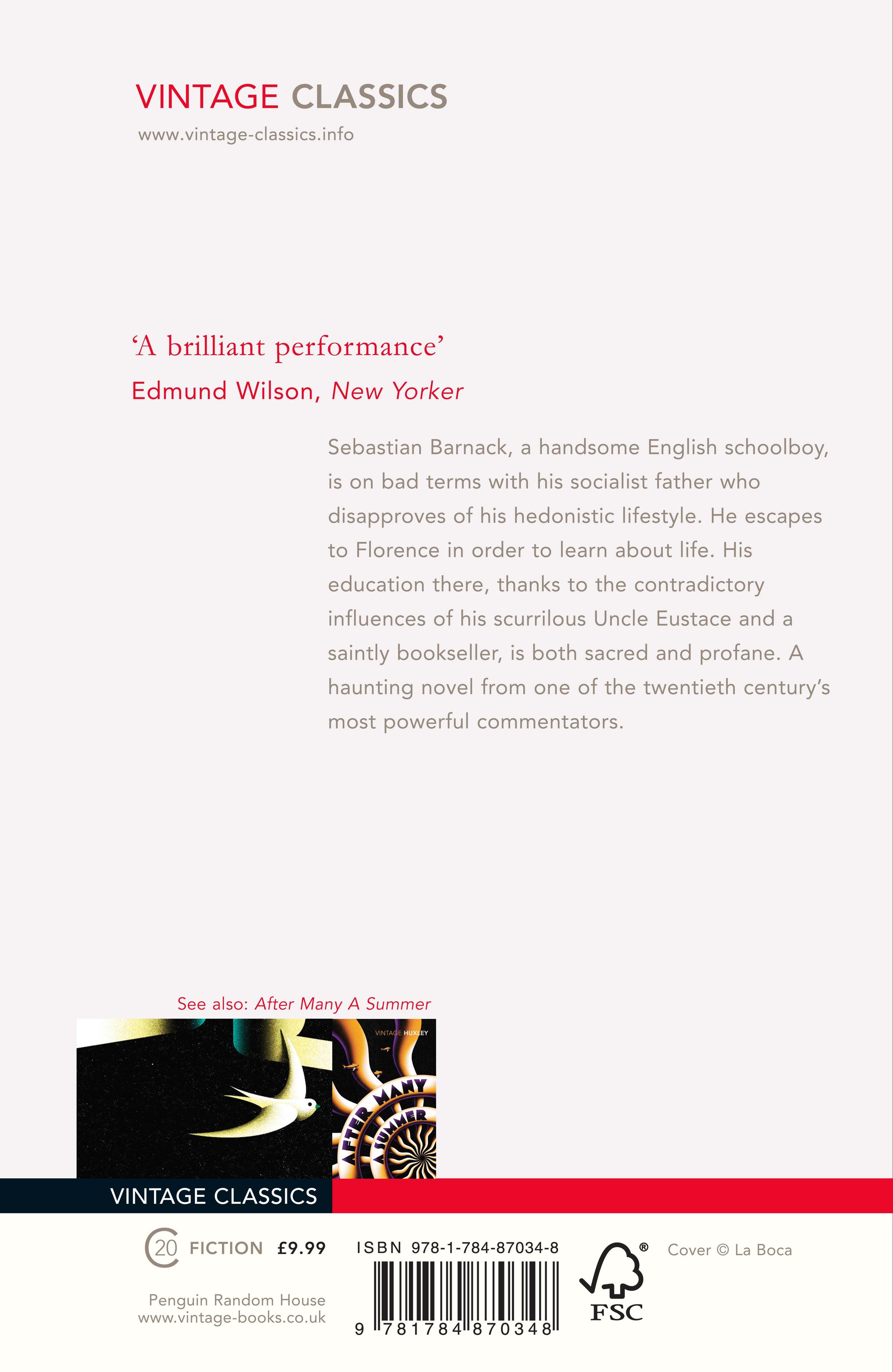 Sebastian Barnack, a handsome English schoolboy, is on bad terms with his socialist father who disapproves of his hedonistic lifestyle. He escapes to Florence in order to learn about life. His education there, thanks to the contradictory influences of his scurrilous Uncle Eustace and a saintly bookseller, is both sacred and profane. A haunting novel from one of the twentieth century's most powerful commentators.