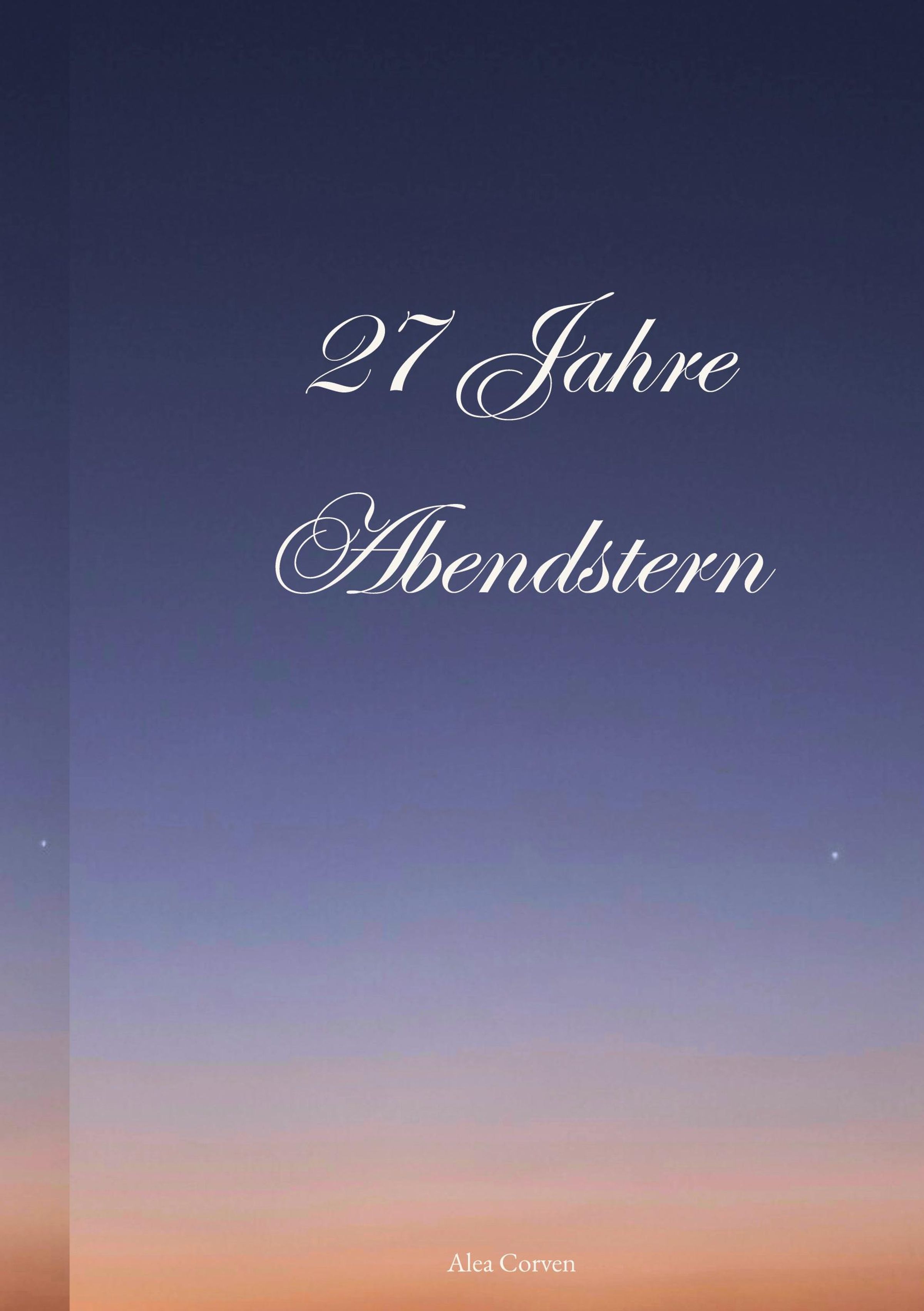 "27 Jahre Abendstern" in eleganter Schrift auf einem Verlauf von dunkelblau nach orange. Unten steht "Alea Corven"., Buch