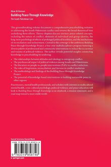 Chapter 1: Introduction.- Chapter 2: Attitudes and Ideology.- Chapter 3: Conflict Studies.- Chapter 4: People-to-People (P2P) Interventions.- Chapter 5: Political Violence.- Chapter 6: Political Violence and the Israeli-Palestinian Conflict.- Chapter 7: Forgiveness and Reconciliation.- Chapter 8: Building Peace through Knowledge.- Chapter 9: Conclusion.