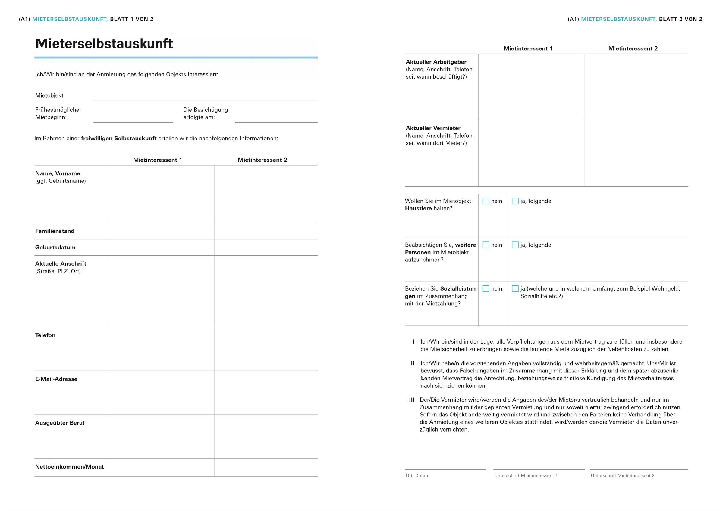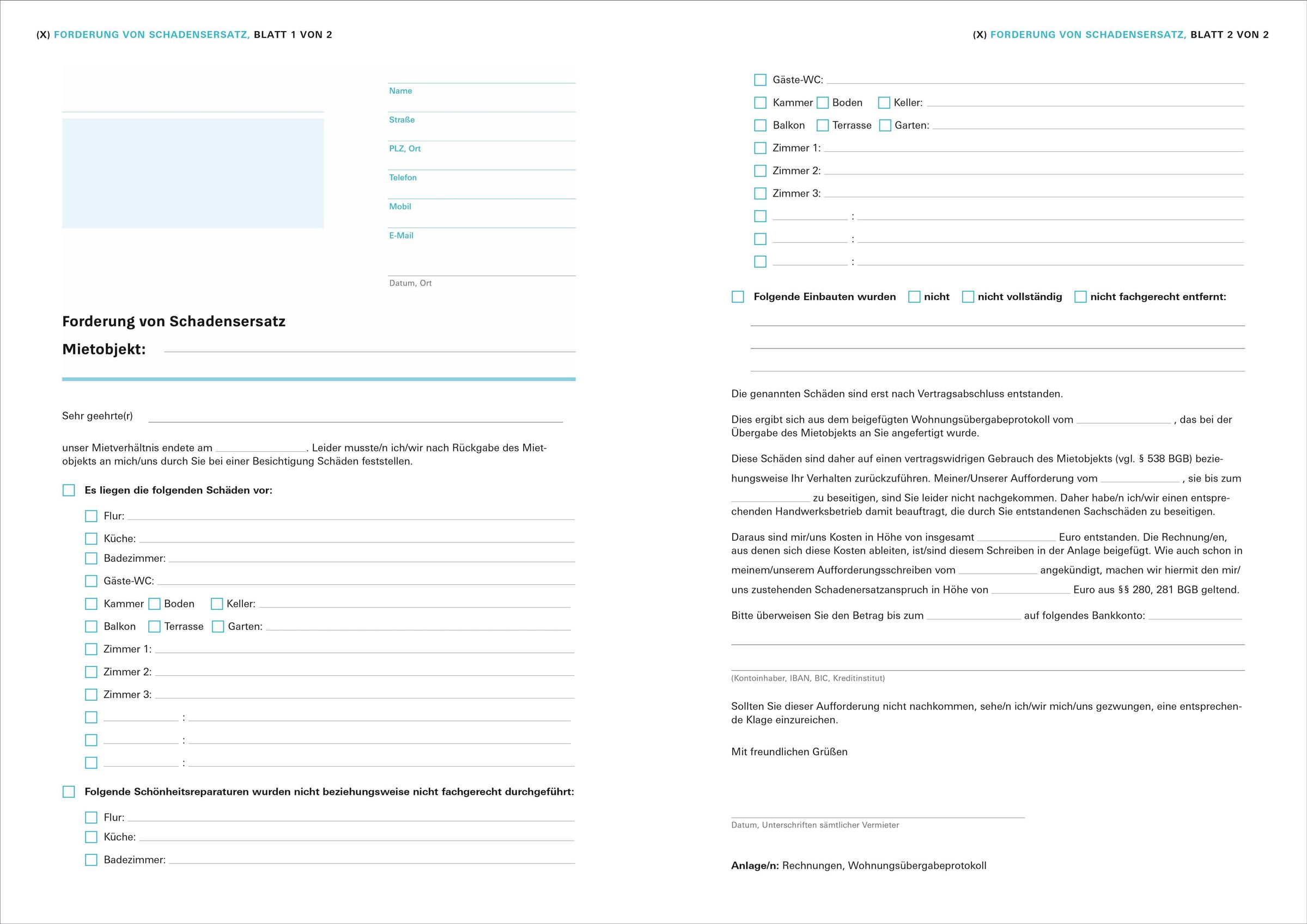 • Mietverträge, Nebenkostenabrechnung, Übergabeprotokoll, Kündigung