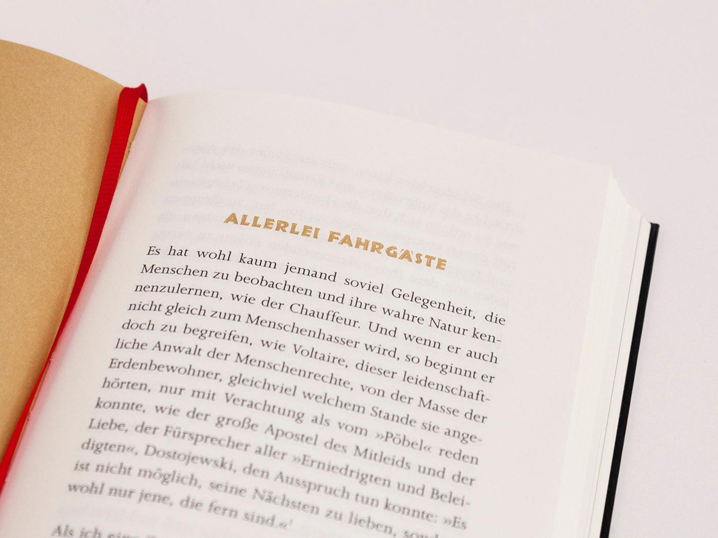 In drei Partien - >>Die am Steuer<<, >>Die im Wagen<< und >>Moloch Verkehr<< - führt Kareno uns durch die Berliner Milieus der 1920er-Jahre und erzählt alles, was er >>als Chauffeur sah, erlebte und erfuhr<<. Damen und Herren fährt er nach dem Mittagessen zu ihren Liebschaften und wieder heim zu Ehegatten und Kindern. Die Fahrer werden Zeugen von Eifersuchtstragödien und -komödien, die sich an den Taxiständen abspielen. Von den Liebesabenteuern auf der Rückbank berichten meist noch >>Unterhosenknöpfe und Gummiwaren einer gewissen Art<<, die zum Schichtwechsel aus den Fahrzeugen getragen werden. Und die Chauffeure lieben auch selbst und werden geliebt - allein für eine Familie reicht ihr karger Lohn nie.
