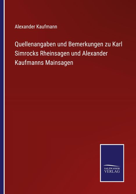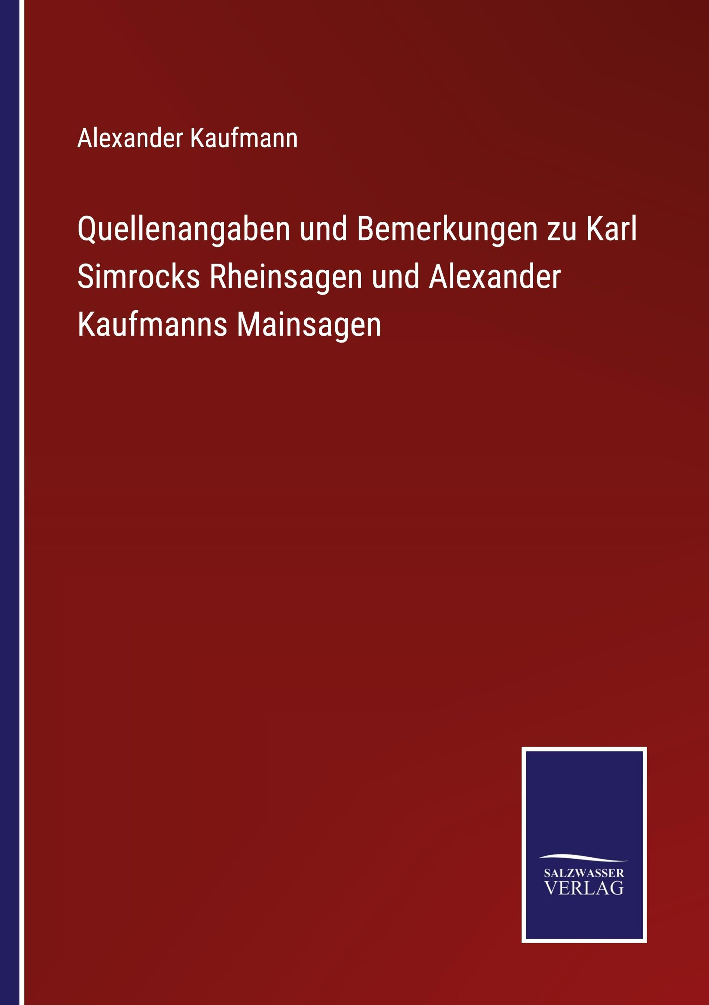 Alexander KaufmannQuellenangaben und bemerkungen zu Karl Simrocks Rheinsagen und Alexander Kaufmanns MainsagenBuchAktueller Preis: EUR 49,90