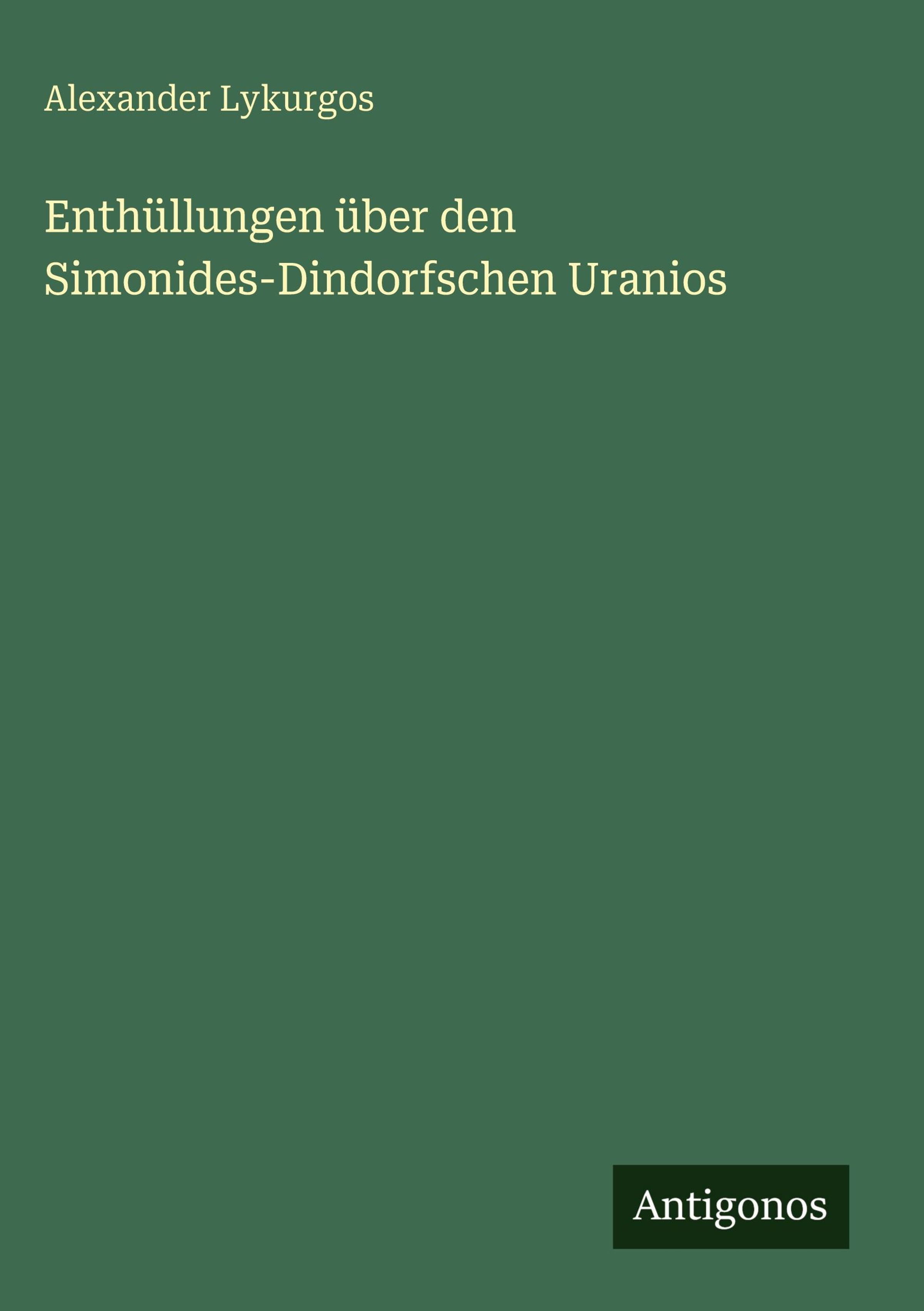 Alexander Lykurgos: Enthüllungen über den Simonides-Dindorfschen Uranios, Gebunden