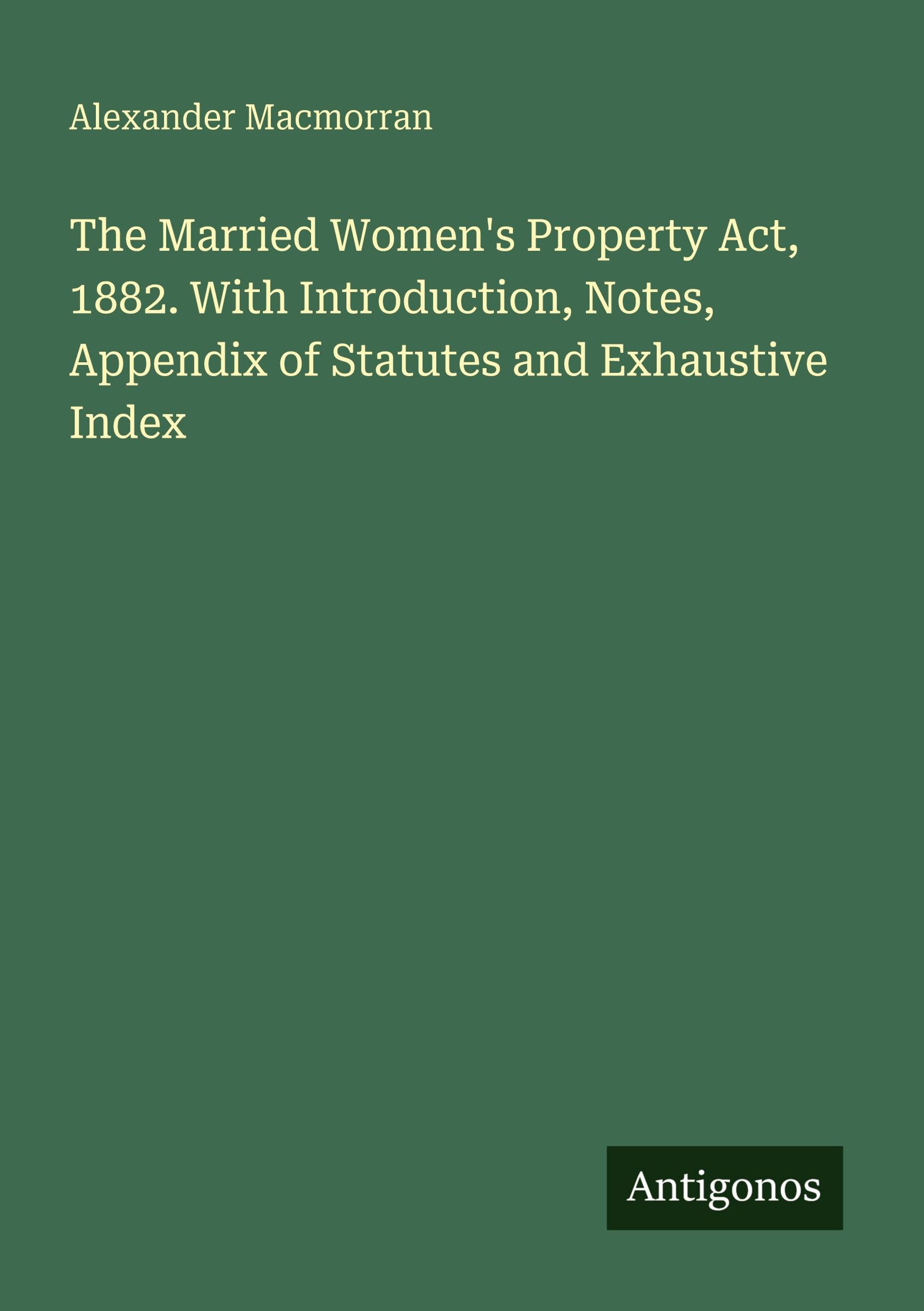 The Married Women's Property Act, 1882. With Introduction, Notes, Appendix of Statutes and Exhaustive Index
