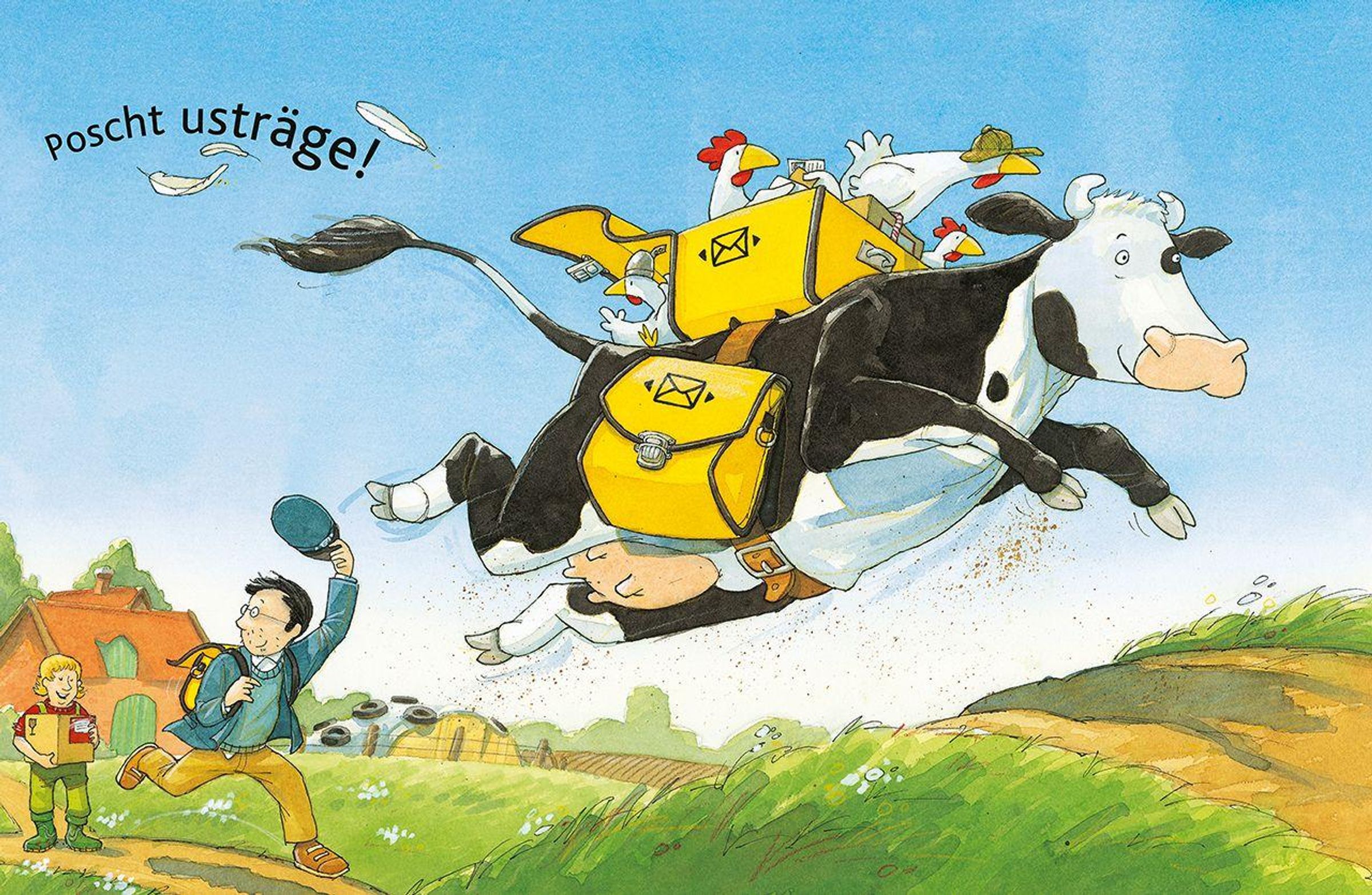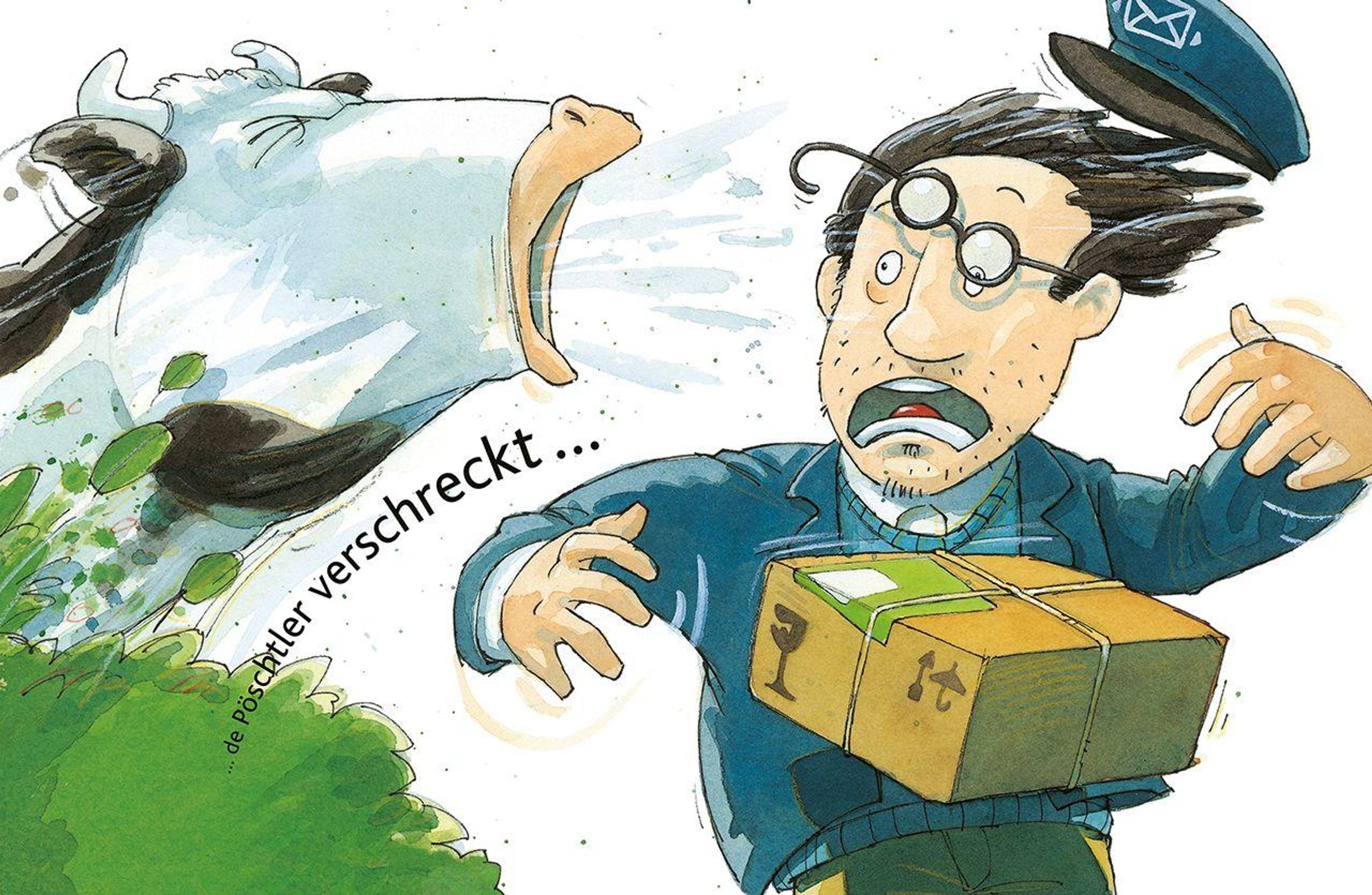 D'Lieselotte hät jede Morge scho bim Mälche ungeduldig uf de Hof use glueget. Es hät nämlich öppis gä, wo d'Lieselotte lieber gmacht hät als alles andere. Sie hät am allerliebschte de Pöschtler verschreckt.