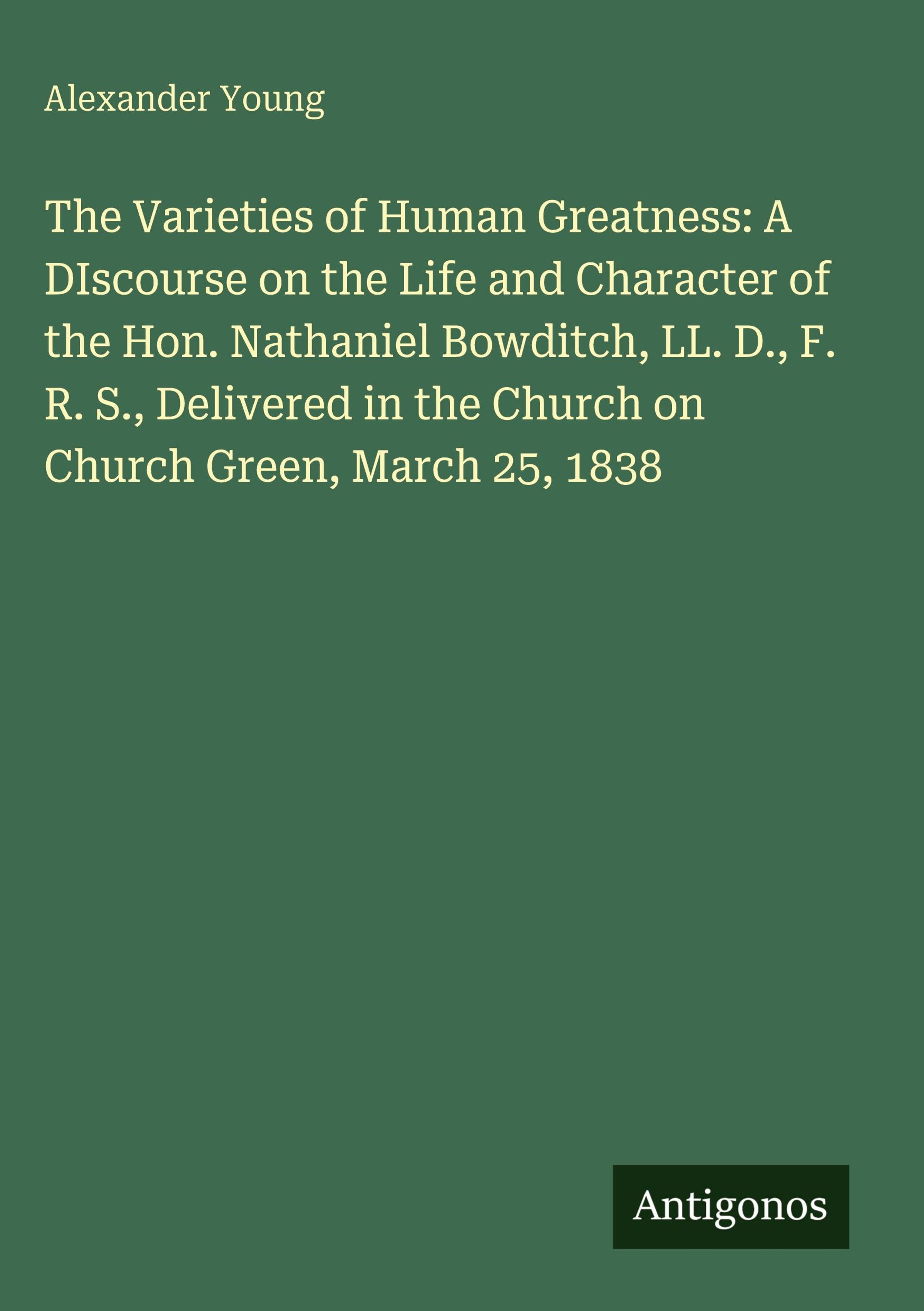 The Varieties of Human Greatness: A DIscourse on the Life and Character of the Hon. Nathaniel Bowditch, LL. D., F. R. S., Delivered in the Church on Church Green, March 25, 1838