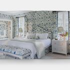 Across all her projects, Kaehler combines playful prints of various scales and motifs, incorporating vibrant wallpapers and fabrics by celebrated design houses such as Schumacher, de Gournay, and Lee Jofa.