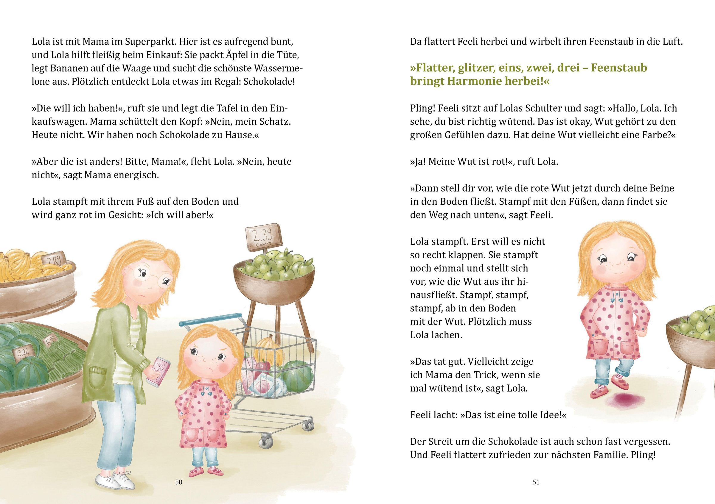 Zanken, motzen, wütend sein - das mag doch eigentlich niemand. Und dennoch geraten wir im Familienalltag schnell in Streit - über die Fernseh- oder Zu-Bett-Geh-Zeiten, das geliebte Spielzeug des Geschwisterchens oder die Frage, was in den Einkaufswagen gehört. Wer wünscht sich dann nicht einen liebevollen Vermittler, mit dessen Hilfe der Konflikt ganz schnell wieder vergessen und negative Gefühle wie weggeblasen sind? Feeli, die kleine Fee, fliegt von Familie zu Familie und hat viele Tipps im Gepäck, mit denen das im Nu gelingt. Acht kindgerechte und zauberhaft bebilderte Geschichten erzählen von gegenseitigem Verständnis, Humor und Gelassenheit im Familienleben. Coachingfragen am Ende jeder Geschichte unterstützen Eltern darüber hinaus, ihre eigenen festgefahrenen Denkmuster zu hinterfragen und ihre ganz persönliche Wahrheit im Umgang mit ihren Kindern zu leben - und das ohne erhobenen Zeigefinger.